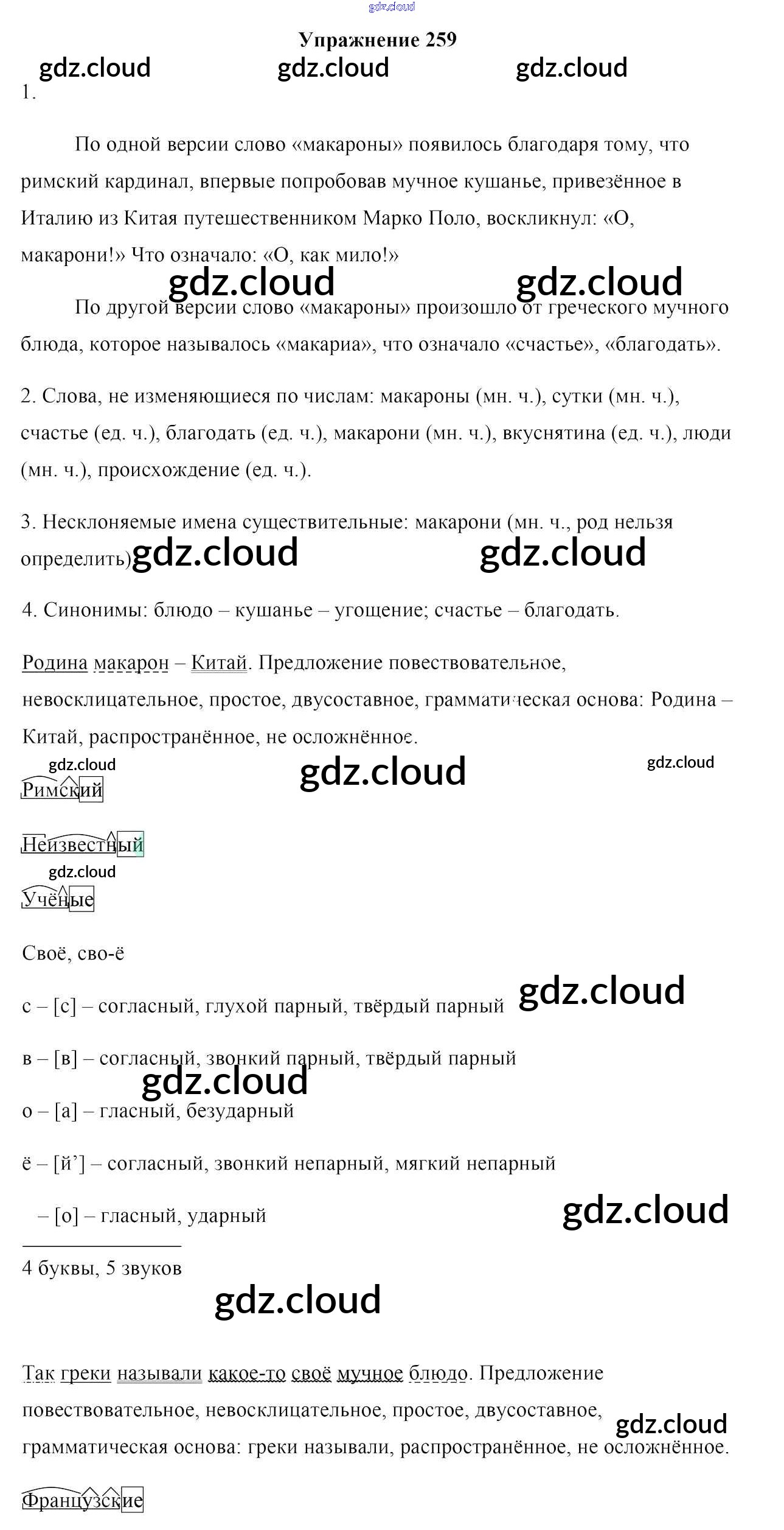Ответ на задание 259 Учебник Русский язык за 6 (шестой) класс Мурина, Литвинко, Николаенко 2020 Часть