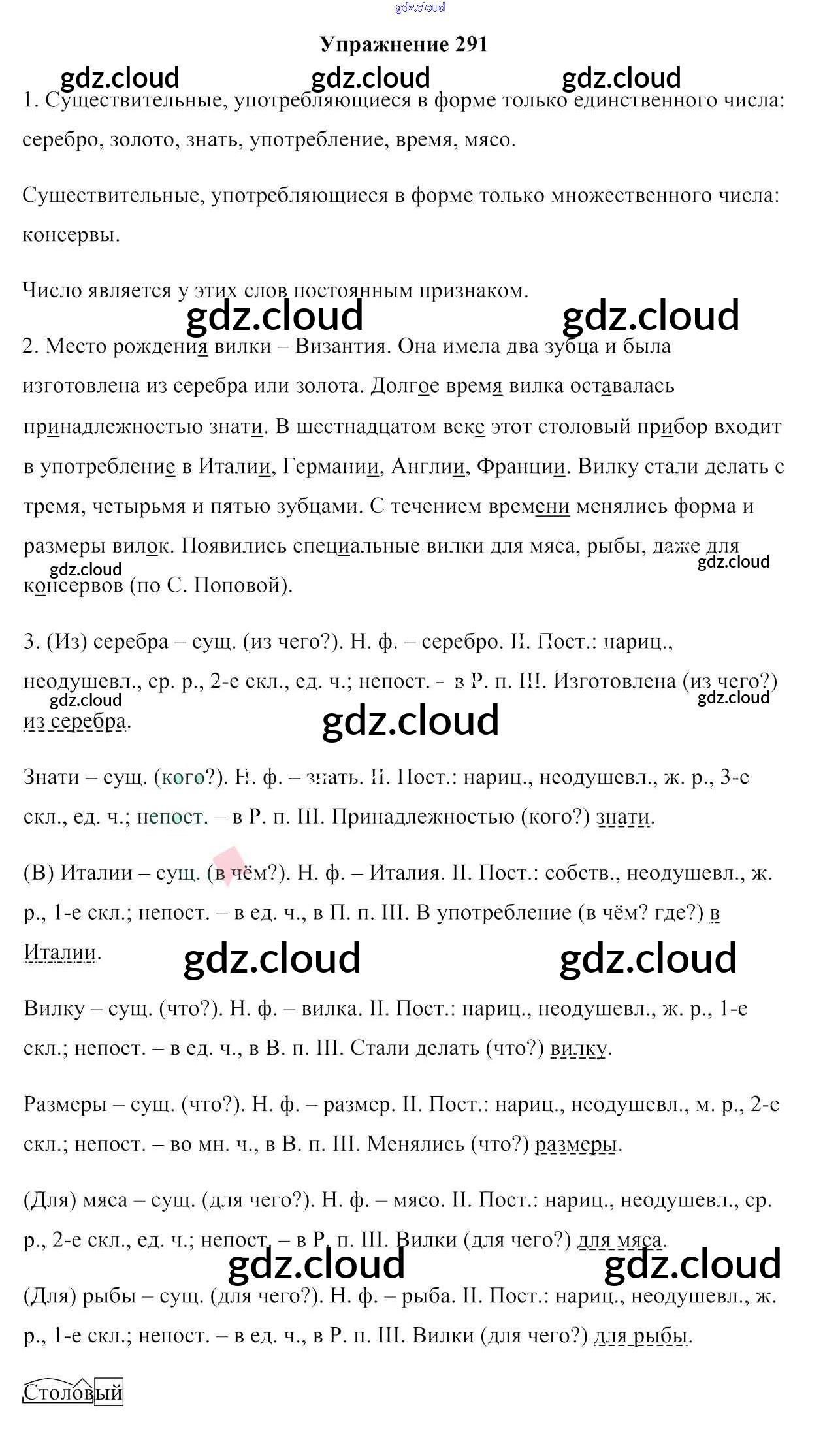 Ответ на задание 291 Учебник Русский язык за 6 (шестой) класс Мурина, Литвинко, Николаенко 2020 Часть