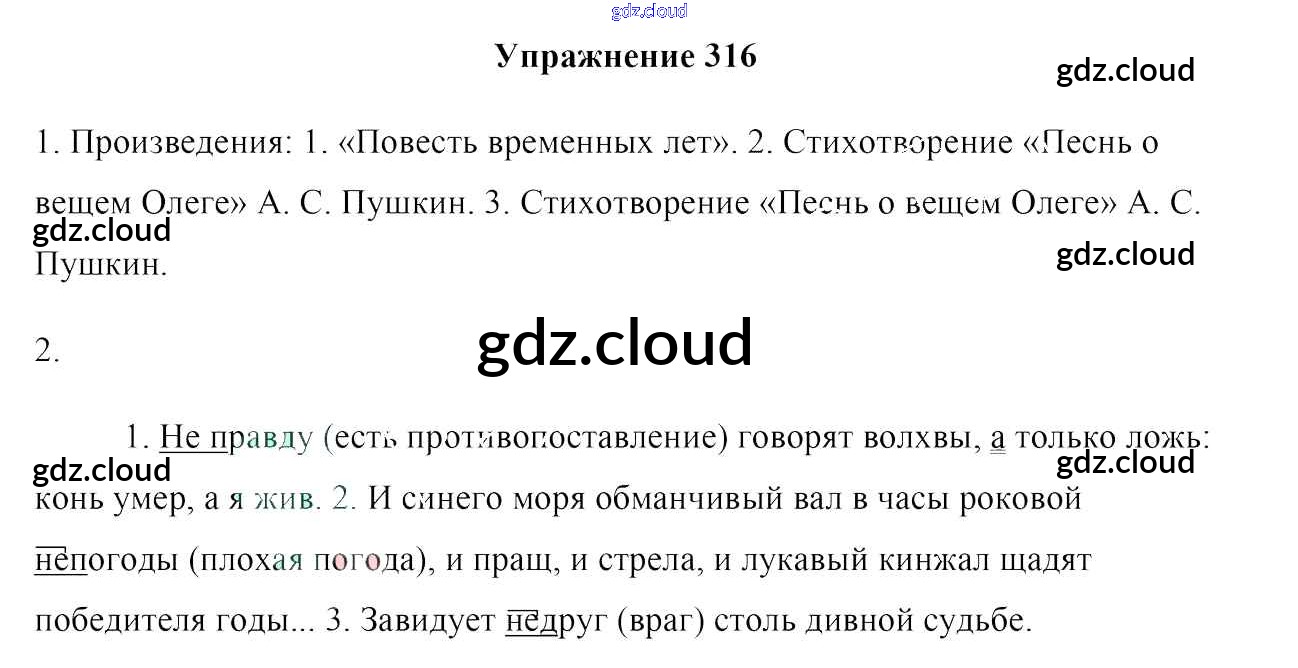 Ответ на задание 316 Учебник Русский язык за 6 (шестой) класс Мурина, Литвинко, Николаенко 2020 Часть