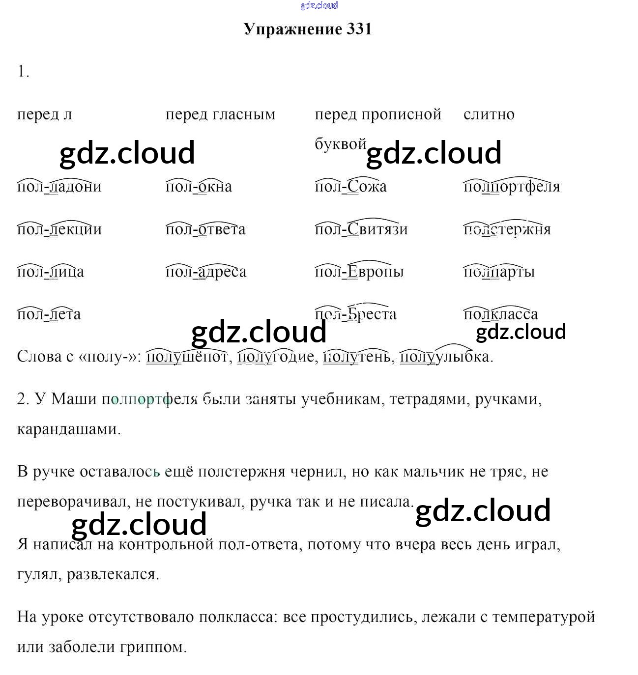 Ответ на задание 331 Учебник Русский язык за 6 (шестой) класс Мурина, Литвинко, Николаенко 2020 Часть