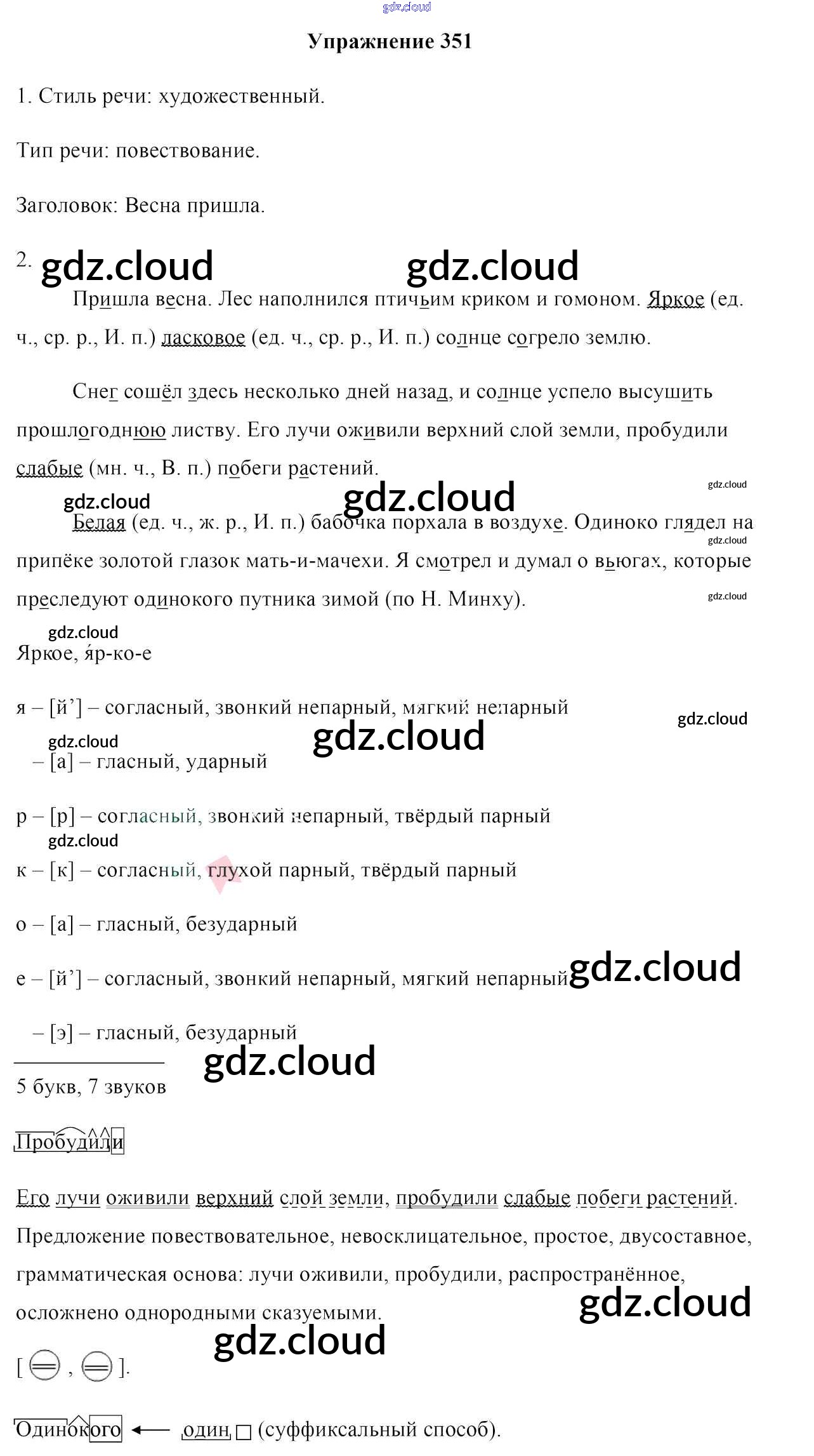 Ответ на задание 351 Учебник Русский язык за 6 (шестой) класс Мурина, Литвинко, Николаенко 2020 Часть