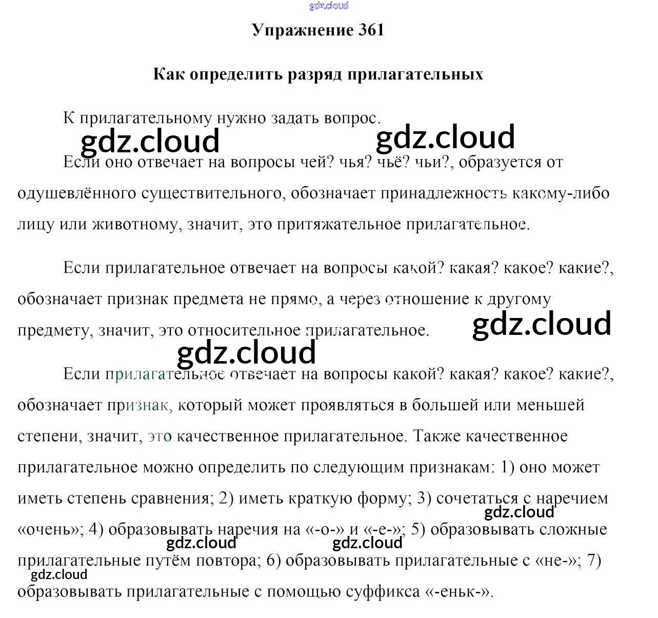 Ответ на задание 361 Учебник Русский язык за 6 (шестой) класс Мурина, Литвинко, Николаенко 2020 Часть