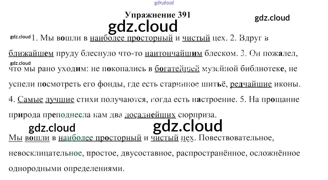 Ответ на задание 391 Учебник Русский язык за 6 (шестой) класс Мурина, Литвинко, Николаенко 2020 Часть