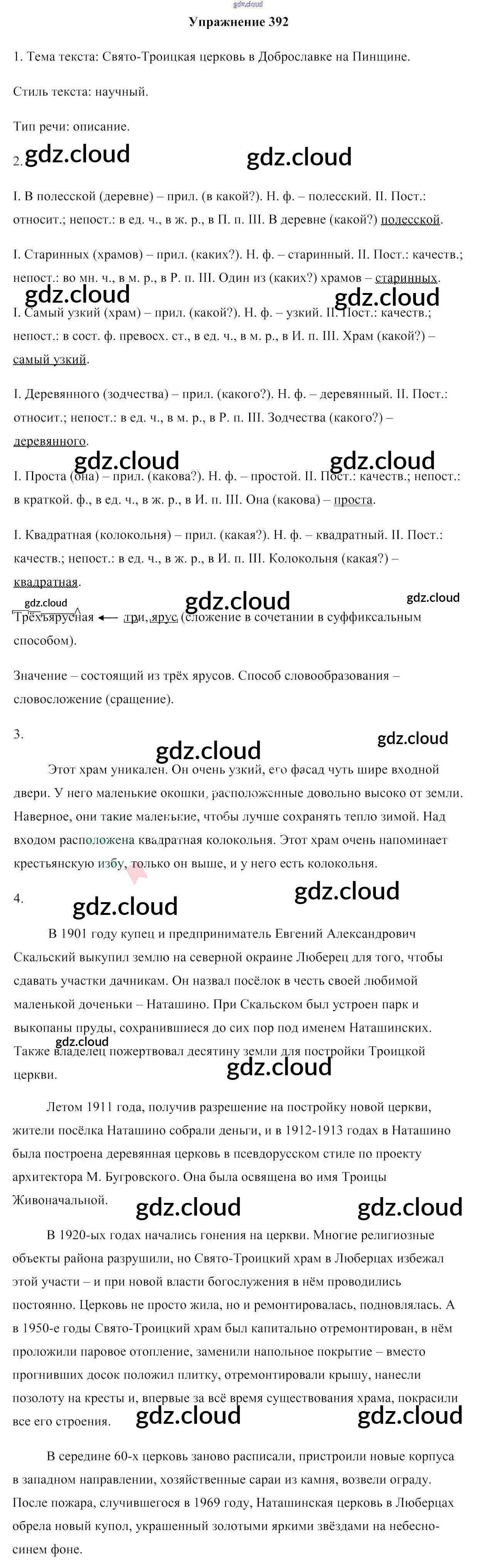 Ответ на задание 392 Учебник Русский язык за 6 (шестой) класс Мурина, Литвинко, Николаенко 2020 Часть