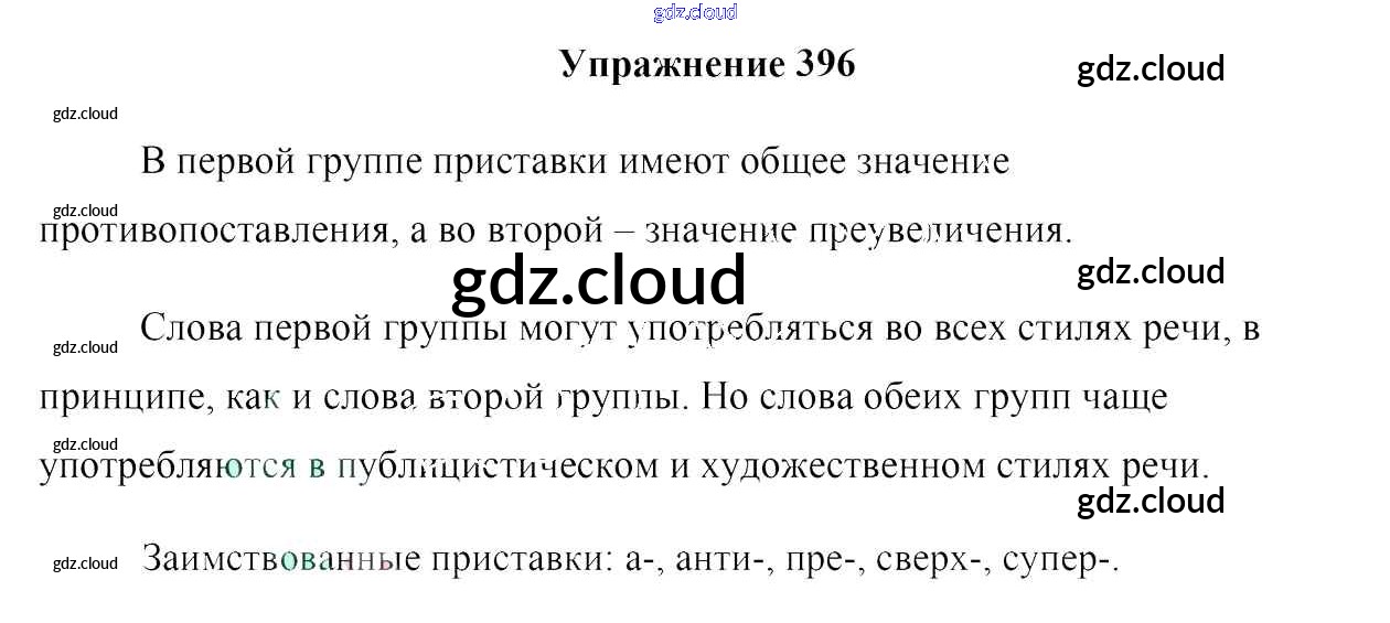 Ответ на задание 396 Учебник Русский язык за 6 (шестой) класс Мурина, Литвинко, Николаенко 2020 Часть