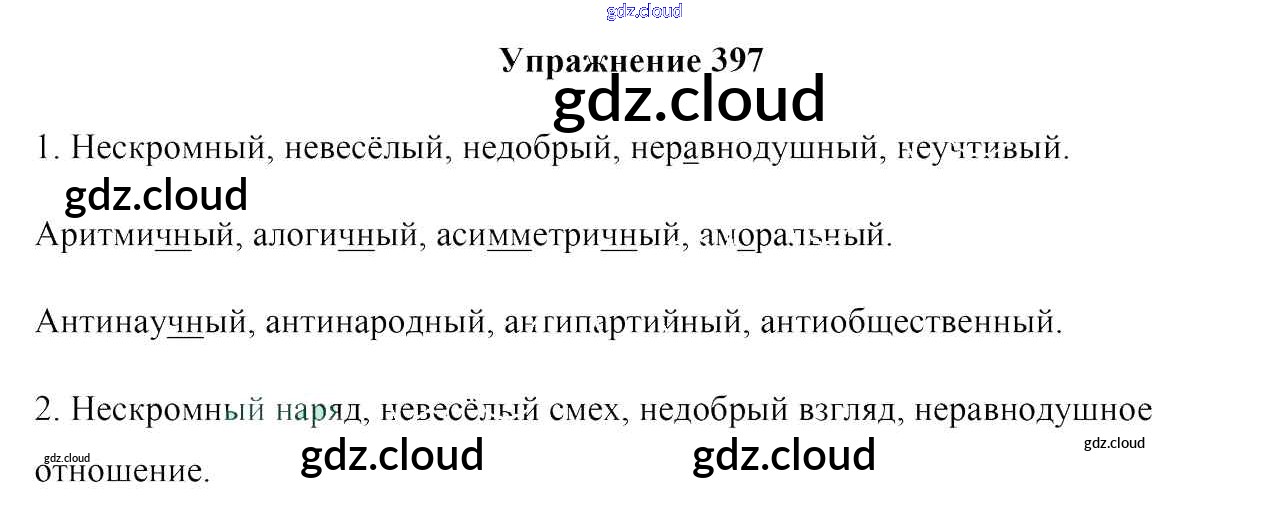 Ответ на задание 397 Учебник Русский язык за 6 (шестой) класс Мурина, Литвинко, Николаенко 2020 Часть