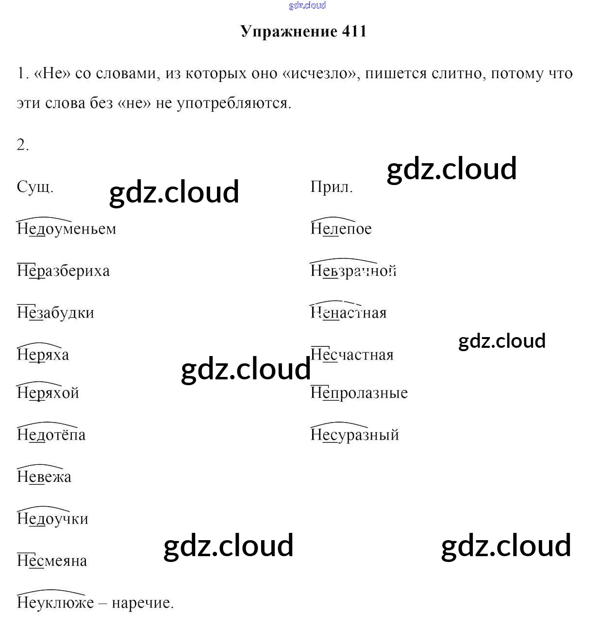 Ответ на задание 411 Учебник Русский язык за 6 (шестой) класс Мурина, Литвинко, Николаенко 2020 Часть
