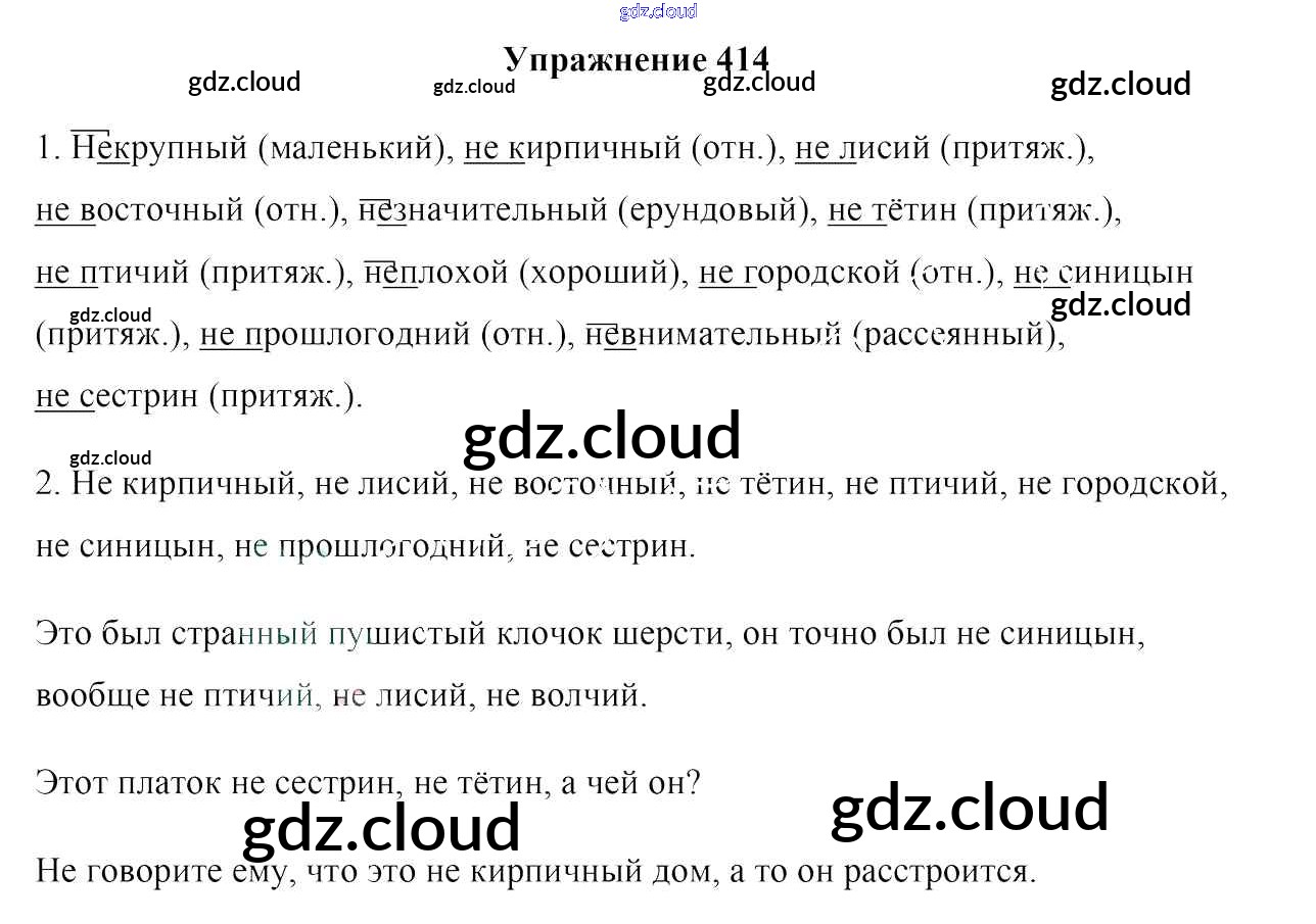 Ответ на задание 414 Учебник Русский язык за 6 (шестой) класс Мурина, Литвинко, Николаенко 2020 Часть