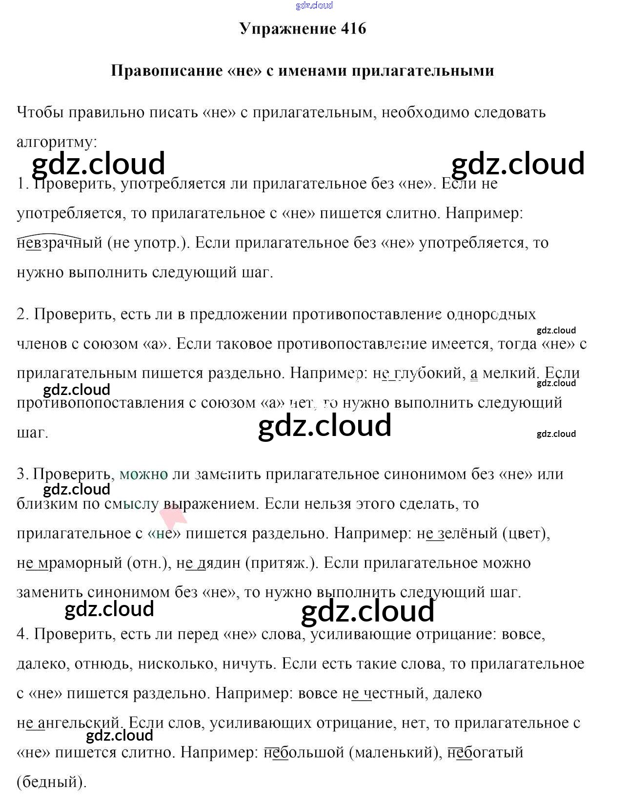 Ответ на задание 416 Учебник Русский язык за 6 (шестой) класс Мурина, Литвинко, Николаенко 2020 Часть