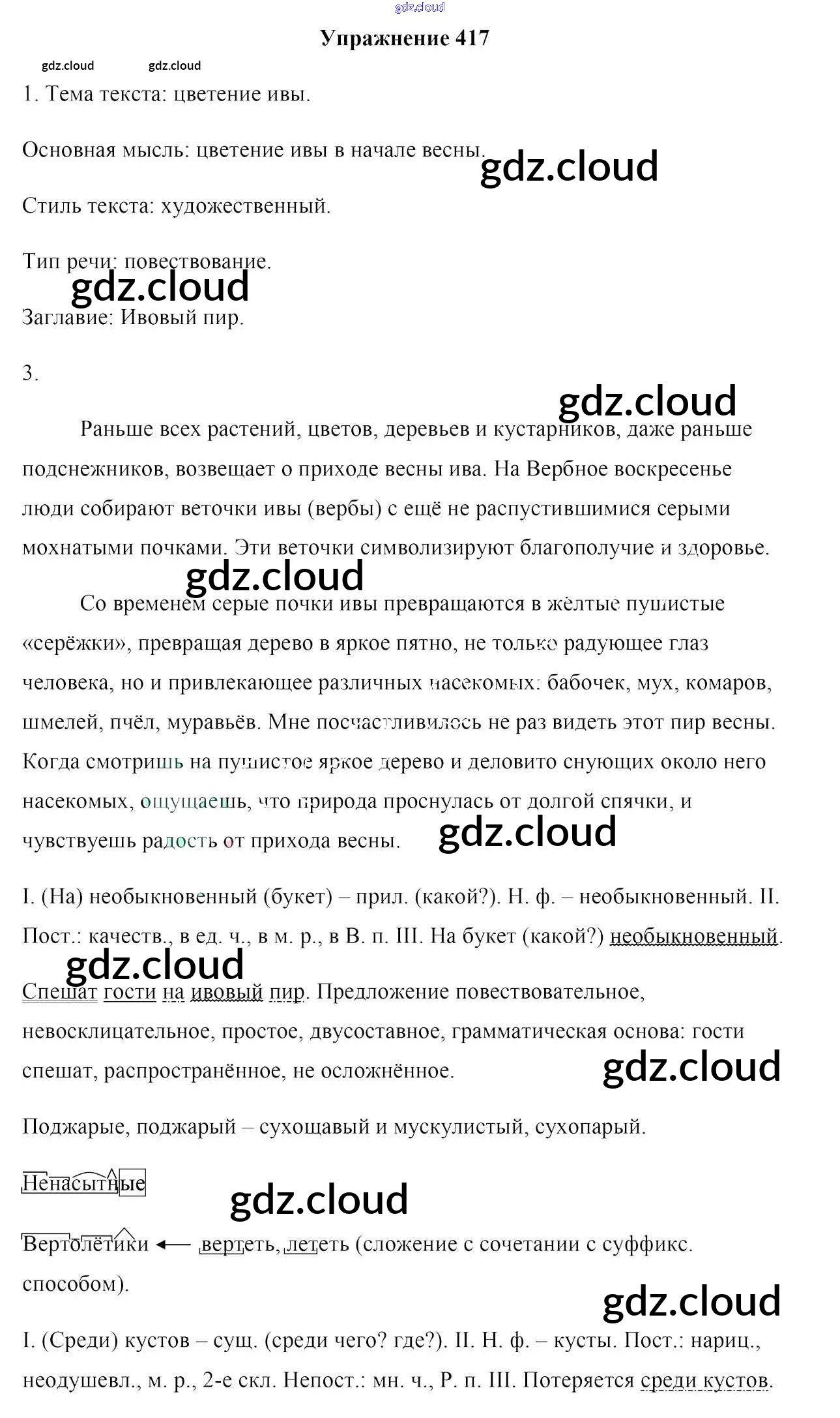 Ответ на задание 417 Учебник Русский язык за 6 (шестой) класс Мурина, Литвинко, Николаенко 2020 Часть