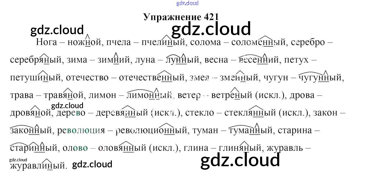 Ответ на задание 421 Учебник Русский язык за 6 (шестой) класс Мурина, Литвинко, Николаенко 2020 Часть