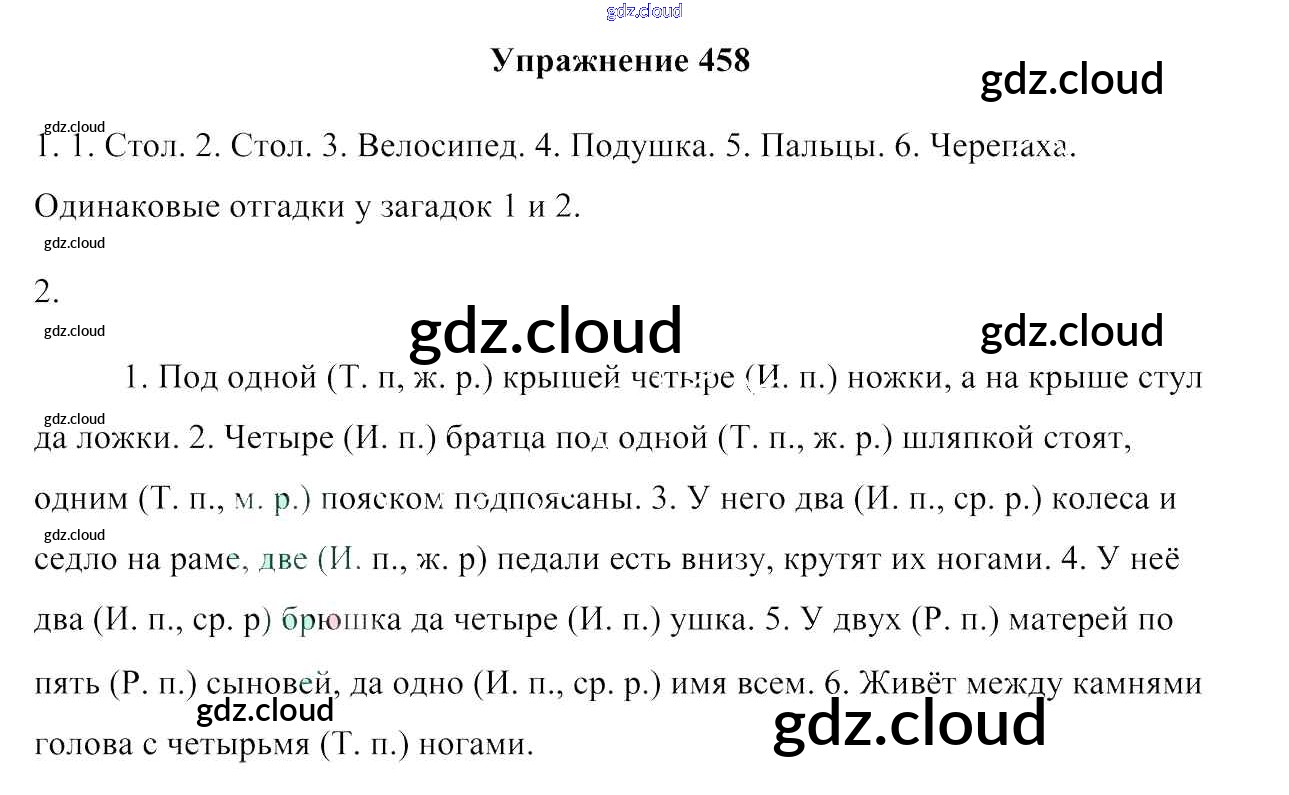 Ответ на задание 458 Учебник Русский язык за 6 (шестой) класс Мурина, Литвинко, Николаенко 2020 Часть