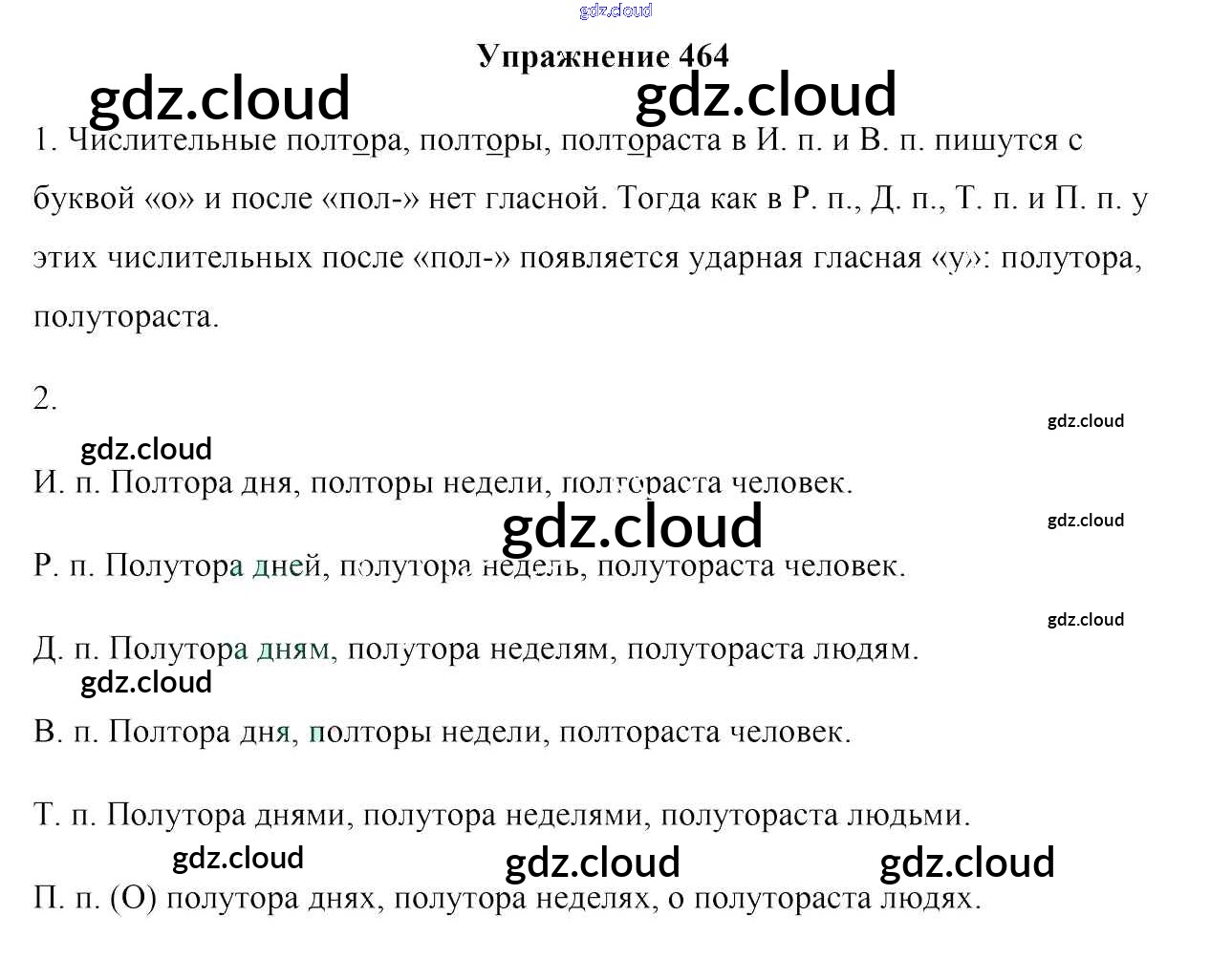 Ответ на задание 464 Учебник Русский язык за 6 (шестой) класс Мурина, Литвинко, Николаенко 2020 Часть