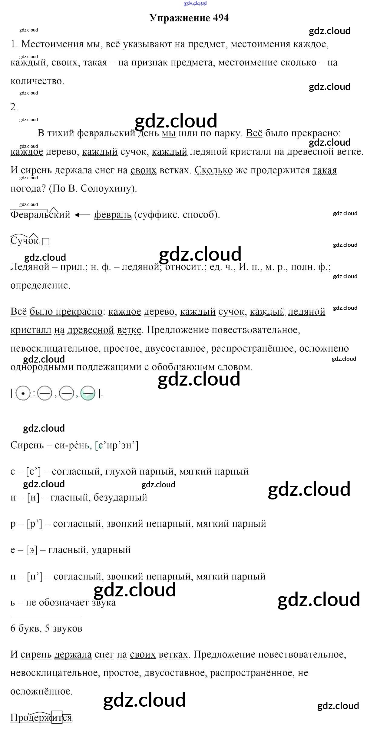 Ответ на задание 494 Учебник Русский язык за 6 (шестой) класс Мурина, Литвинко, Николаенко 2020 Часть