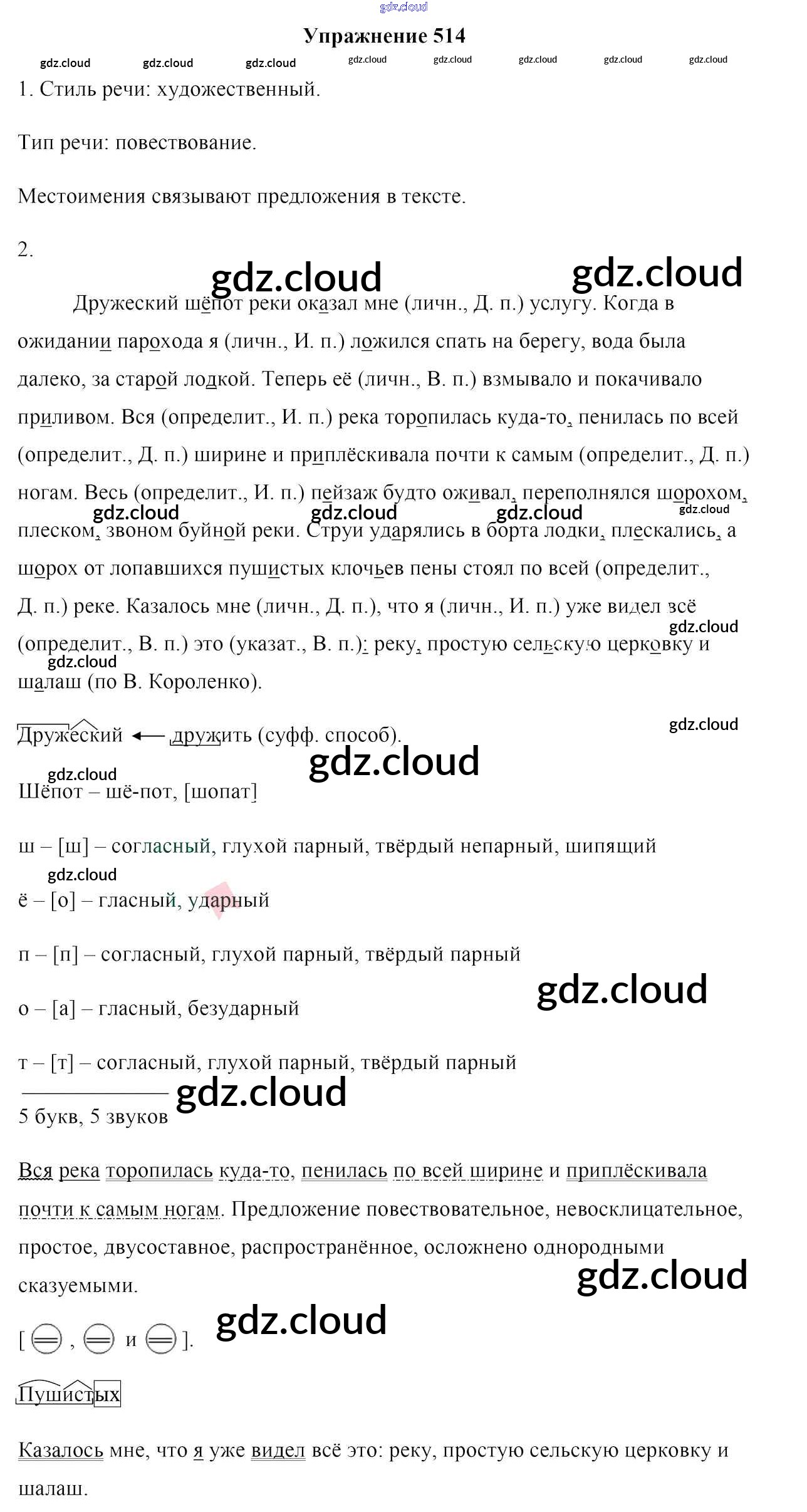 Ответ на задание 514 Учебник Русский язык за 6 (шестой) класс Мурина, Литвинко, Николаенко 2020 Часть