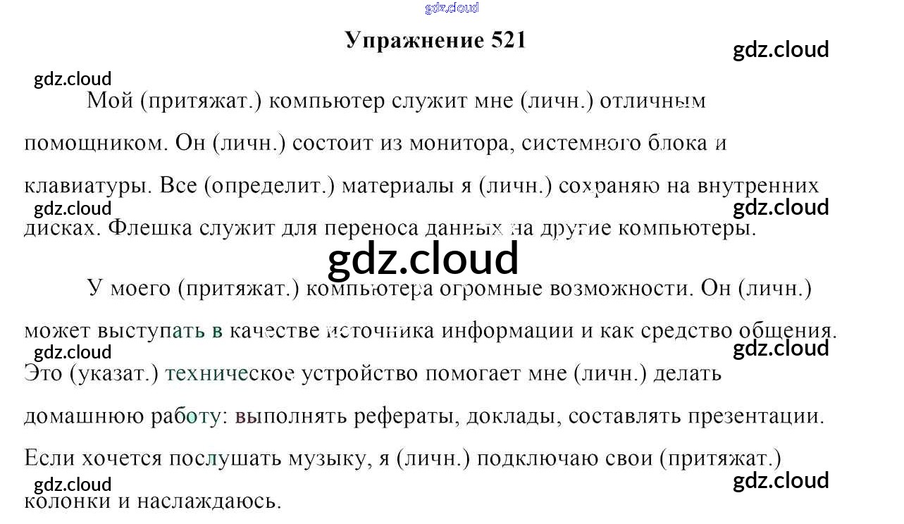 Ответ на задание 521 Учебник Русский язык за 6 (шестой) класс Мурина, Литвинко, Николаенко 2020 Часть