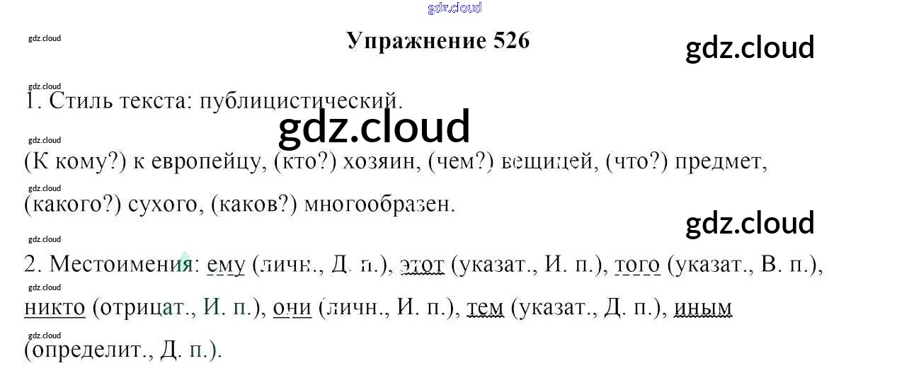 Ответ на задание 526 Учебник Русский язык за 6 (шестой) класс Мурина, Литвинко, Николаенко 2020 Часть