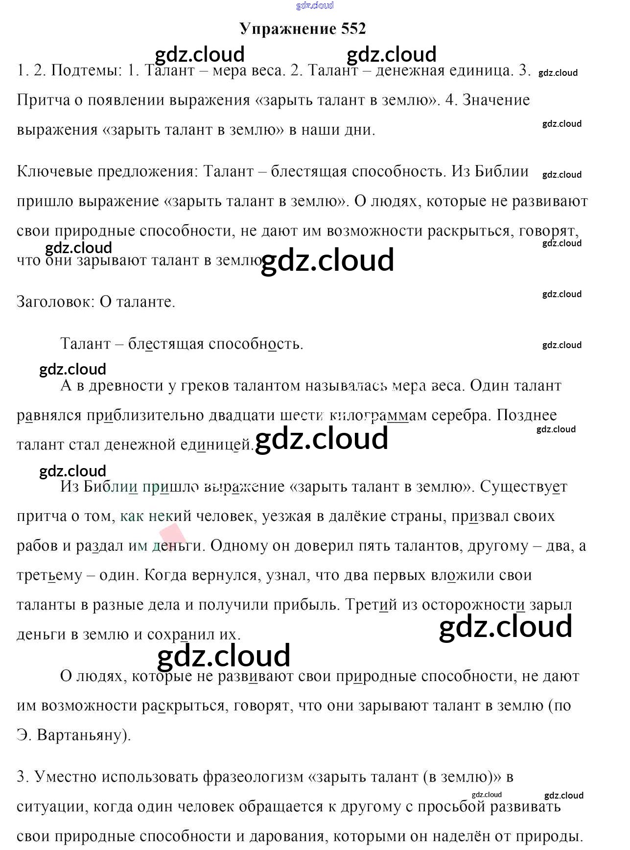 Ответ на задание 552 Учебник Русский язык за 6 (шестой) класс Мурина, Литвинко, Николаенко 2020 Часть