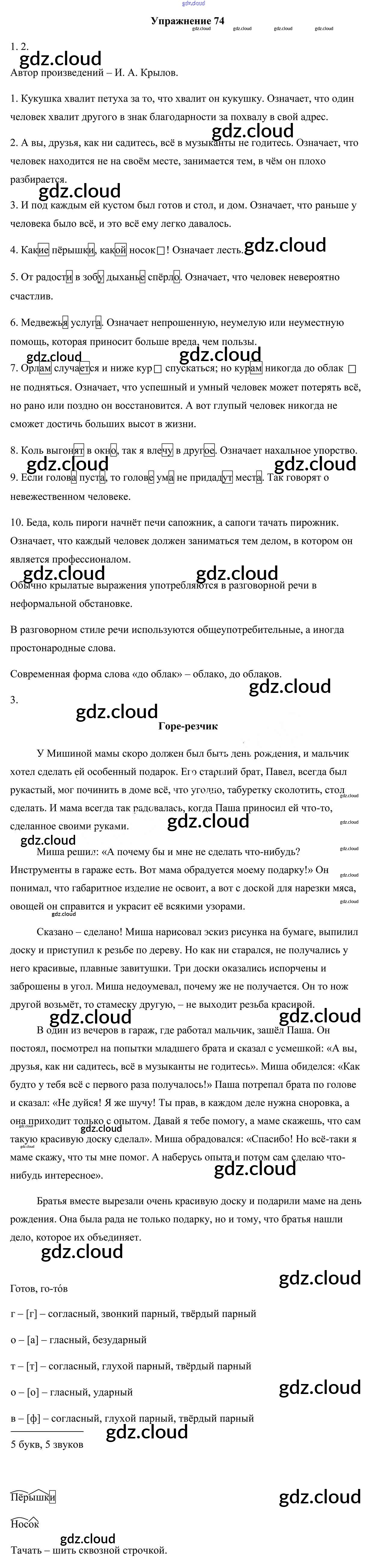 Ответ на задание 74 Учебник Русский язык за 6 (шестой) класс Мурина, Литвинко, Николаенко 2020 Часть ФГОС онлайн и без номера телефона.