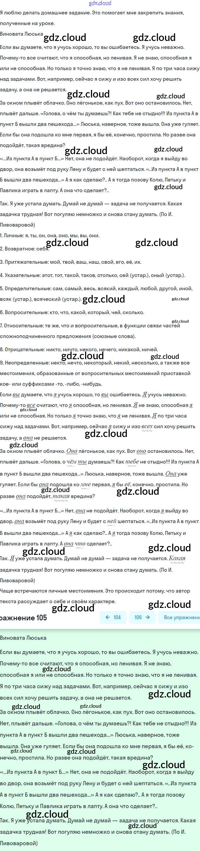 Ответ на задание 105 Рабочая тетрадь Русский язык за 6 (шестой) класс Гостева УМК 2015 ФГОС онлайн и без номера телефона.