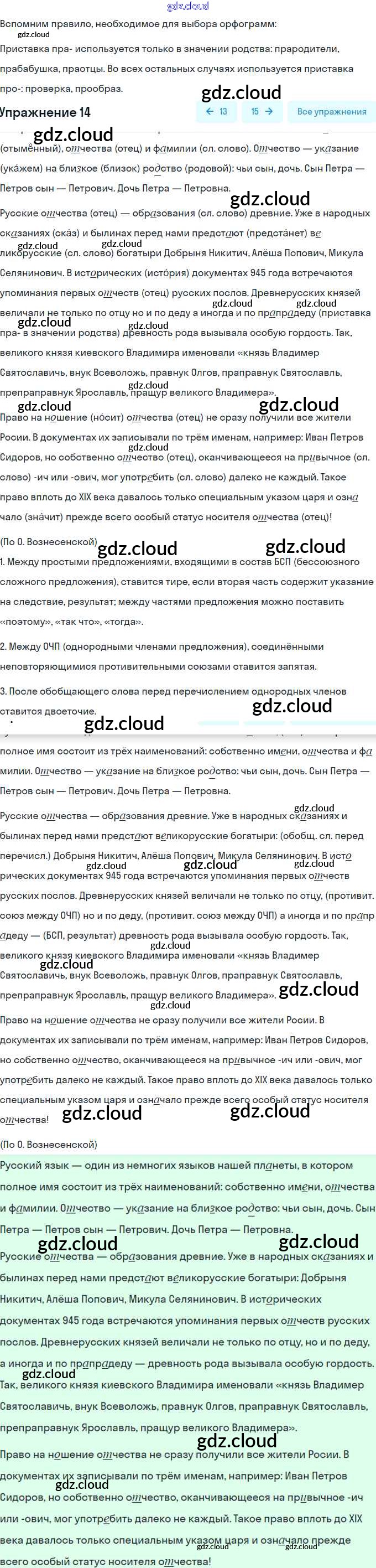 Ответ на задание 14 Рабочая тетрадь Русский язык за 6 (шестой) класс Гостева УМК 2015 ФГОС онлайн и без номера телефона.