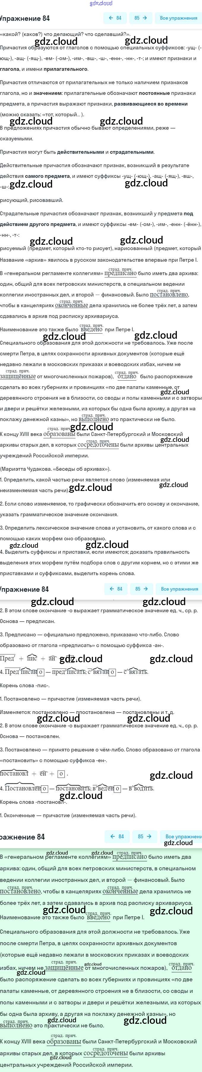 Ответ на задание 84 Рабочая тетрадь Русский язык за 6 (шестой) класс Гостева УМК 2015 ФГОС онлайн и без номера телефона.