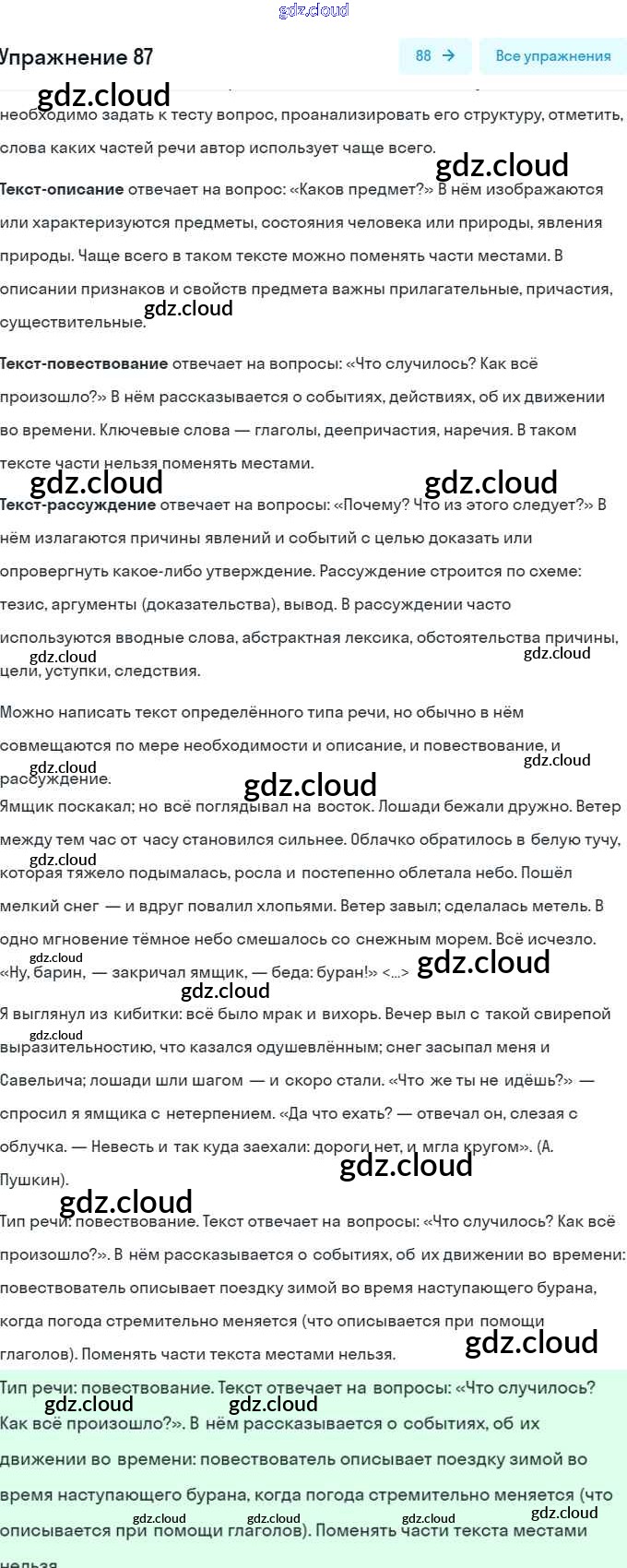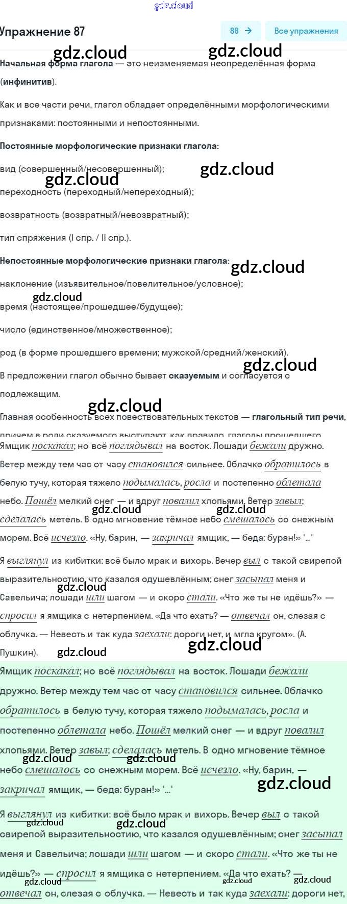 Ответ на задание 87 Рабочая тетрадь Русский язык за 6 (шестой) класс Гостева УМК 2015 ФГОС онлайн и без номера телефона.