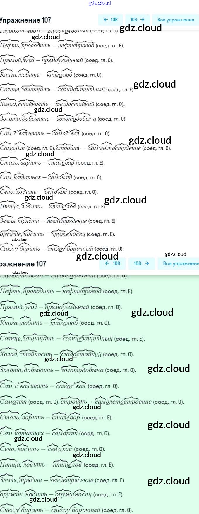 Ответ на задание 107 Рабочая тетрадь Русский язык за 6 (шестой) класс Янченко, Латфуллина, Скугаревская 2022