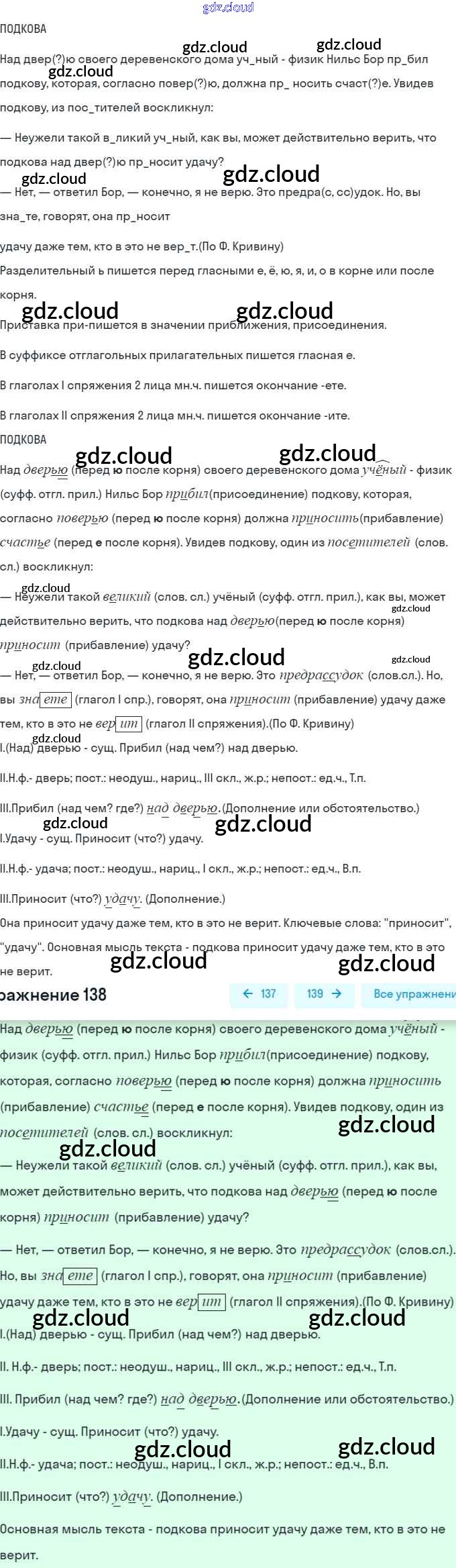 Ответ на задание 138 Рабочая тетрадь Русский язык за 6 (шестой) класс Янченко, Латфуллина, Скугаревская 2022