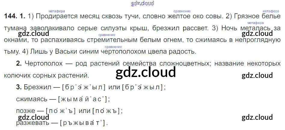 Ответ на задание 144 Учебник Русский язык за 6 (шестой) класс Разумовская, Львова, Капинос, Львов, Соловейчик, Сергеева, Тронина Вертикаль 2016, 2022