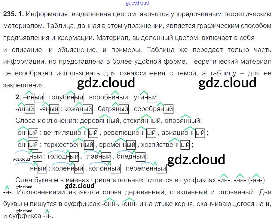 Ответ на задание 235 Учебник Русский язык за 6 (шестой) класс Разумовская, Львова, Капинос, Львов, Соловейчик, Сергеева, Тронина Вертикаль 2016, 2022