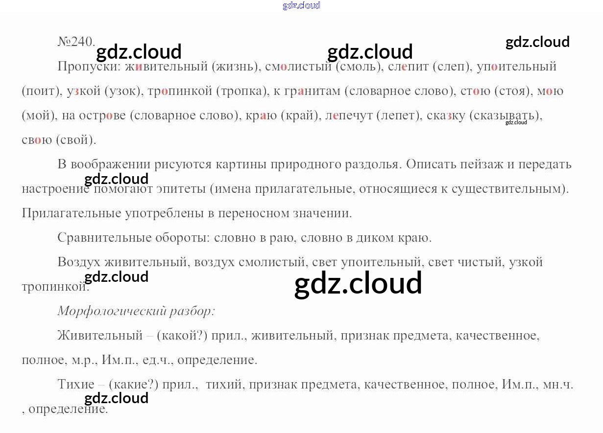 Ответ на задание 240 Учебник Русский язык за 6 (шестой) класс Разумовская, Львова, Капинос, Львов, Соловейчик, Сергеева, Тронина Вертикаль 2016, 2022