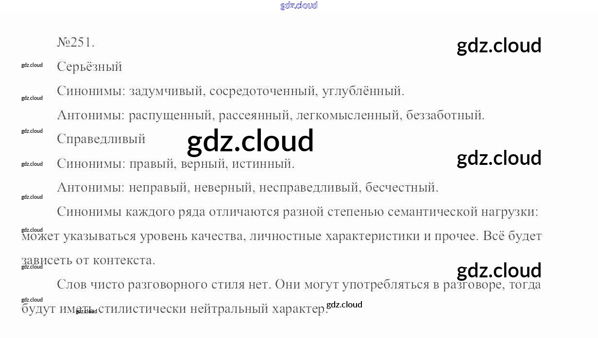 Ответ на задание 251 Учебник Русский язык за 6 (шестой) класс Разумовская, Львова, Капинос, Львов, Соловейчик, Сергеева, Тронина Вертикаль 2016, 2022