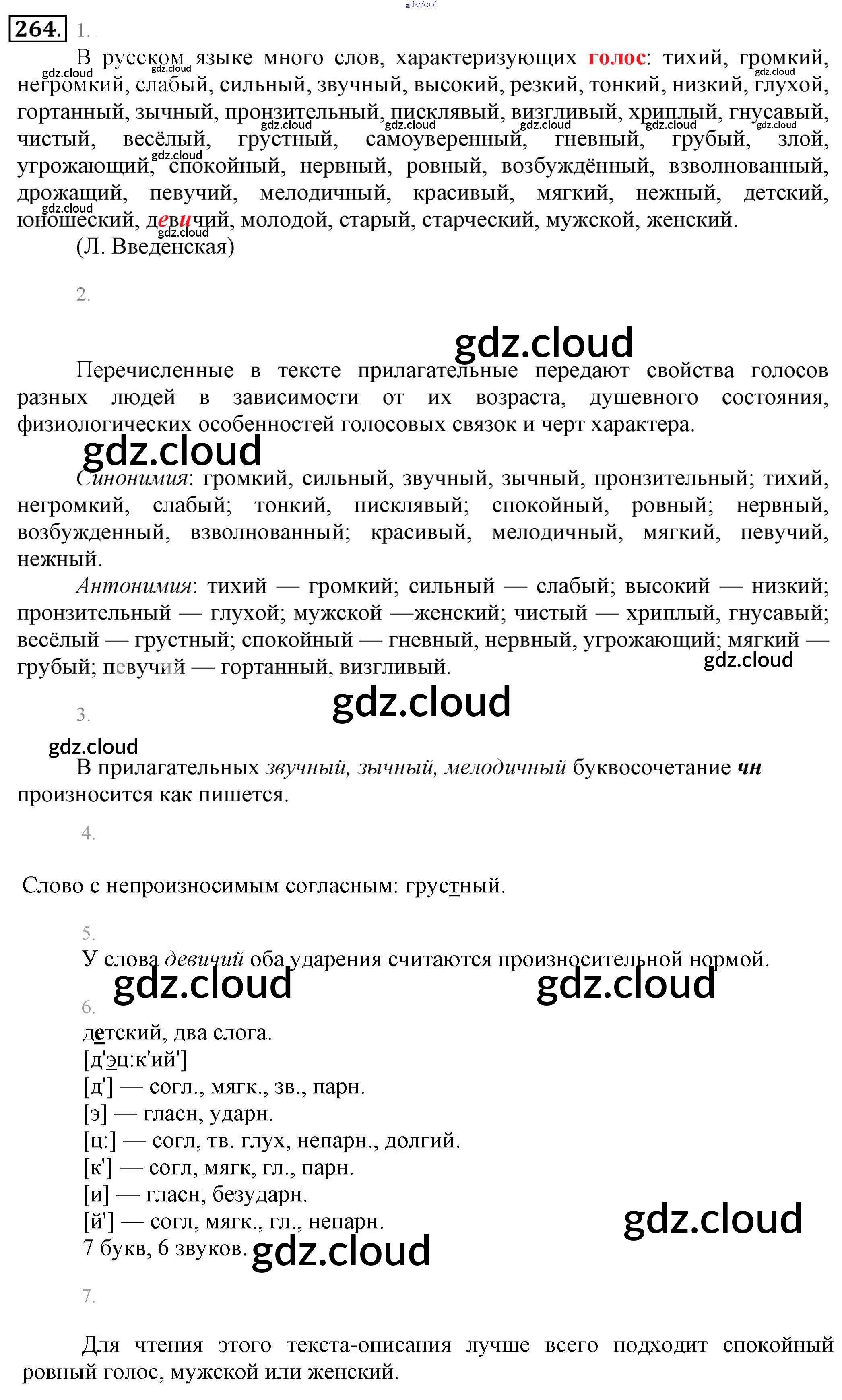 Ответ на задание 264 Учебник Русский язык за 6 (шестой) класс Разумовская, Львова, Капинос, Львов, Соловейчик, Сергеева, Тронина Вертикаль 2016, 2022