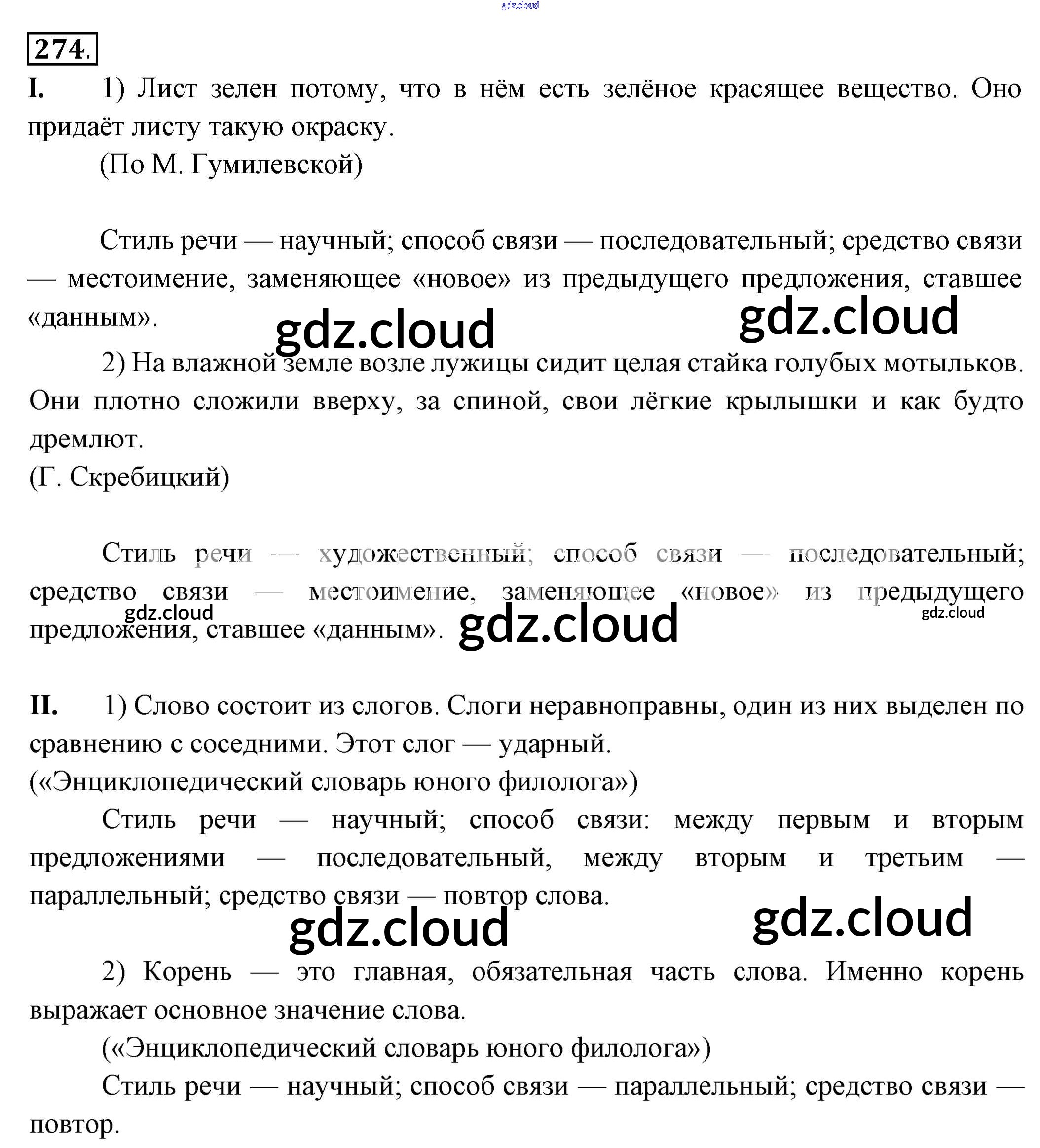 Ответ на задание 274 Учебник Русский язык за 6 (шестой) класс Разумовская, Львова, Капинос, Львов, Соловейчик, Сергеева, Тронина Вертикаль 2016, 2022