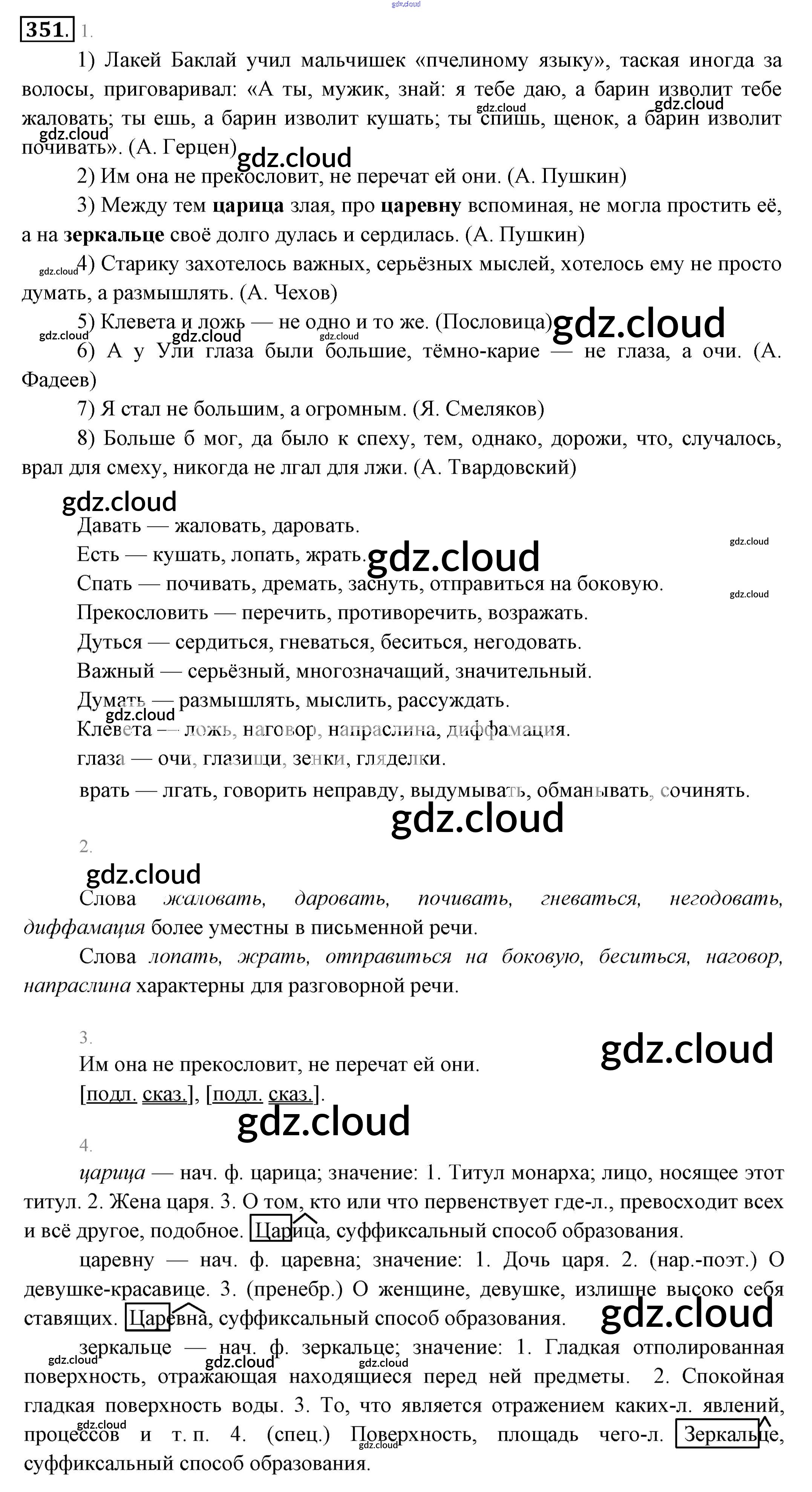 Ответ на задание 351 Учебник Русский язык за 6 (шестой) класс Разумовская, Львова, Капинос, Львов, Соловейчик, Сергеева, Тронина Вертикаль 2016, 2022