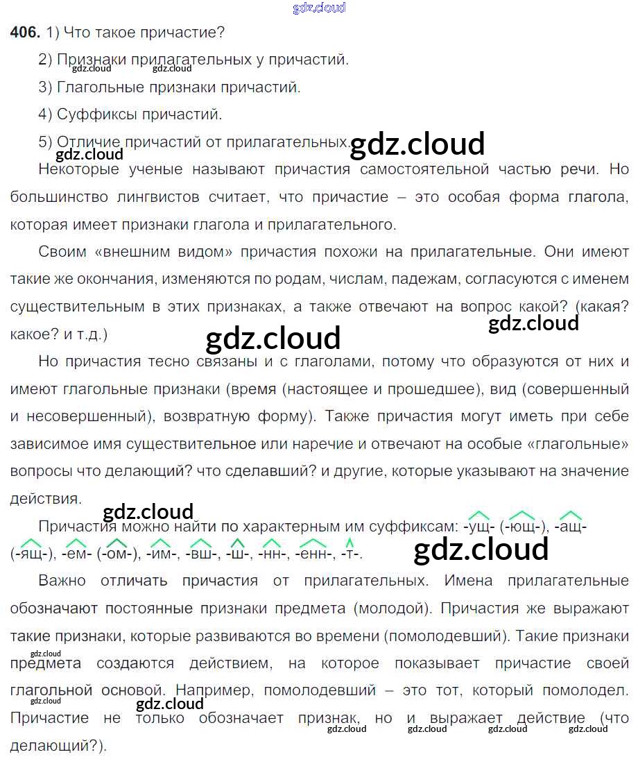 Ответ на задание 406 Учебник Русский язык за 6 (шестой) класс Разумовская, Львова, Капинос, Львов, Соловейчик, Сергеева, Тронина Вертикаль 2016, 2022