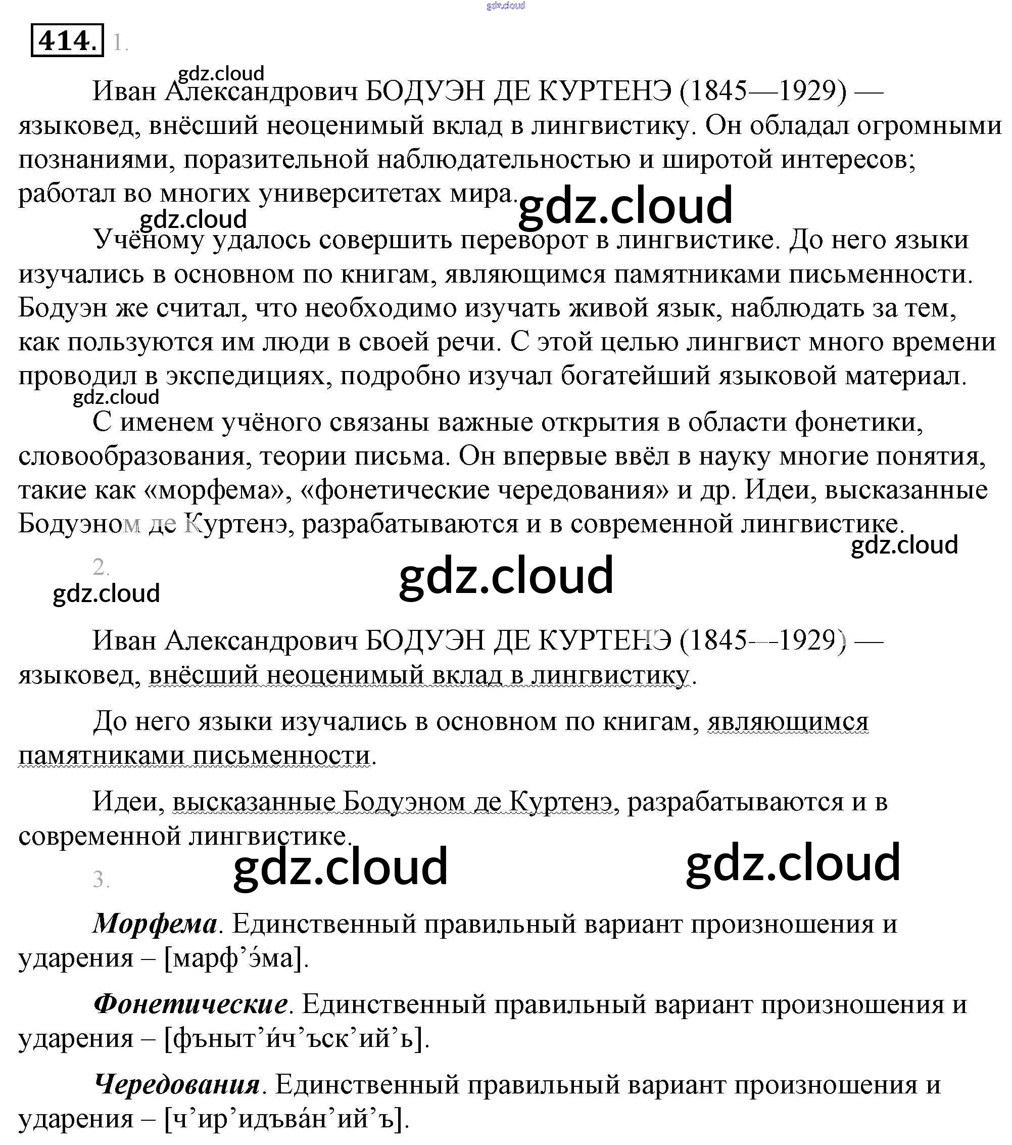 Ответ на задание 414 Учебник Русский язык за 6 (шестой) класс Разумовская, Львова, Капинос, Львов, Соловейчик, Сергеева, Тронина Вертикаль 2016, 2022