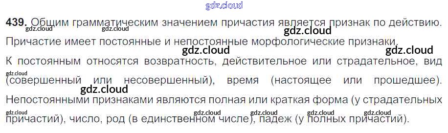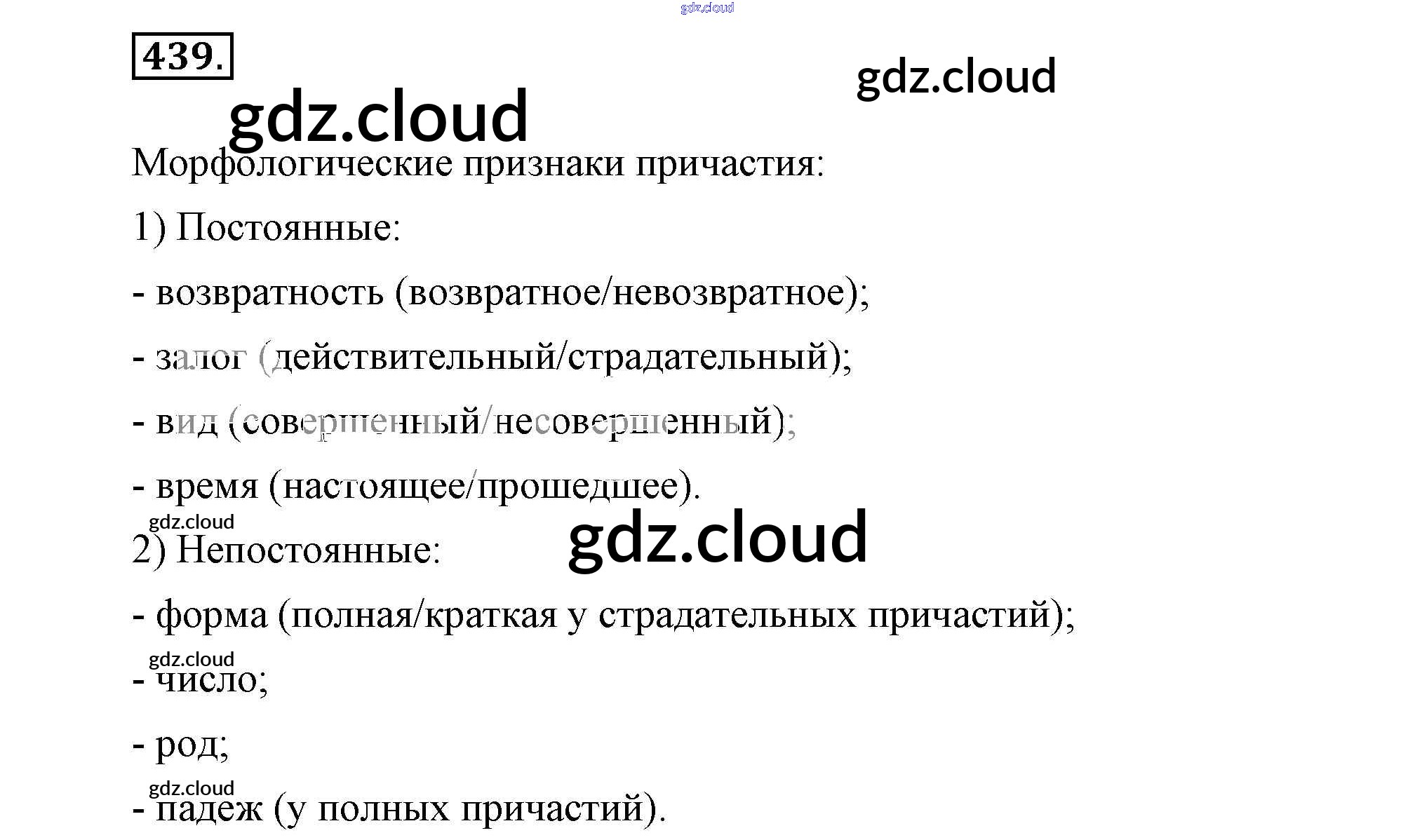 Ответ на задание 439 Учебник Русский язык за 6 (шестой) класс Разумовская, Львова, Капинос, Львов, Соловейчик, Сергеева, Тронина Вертикаль 2016, 2022