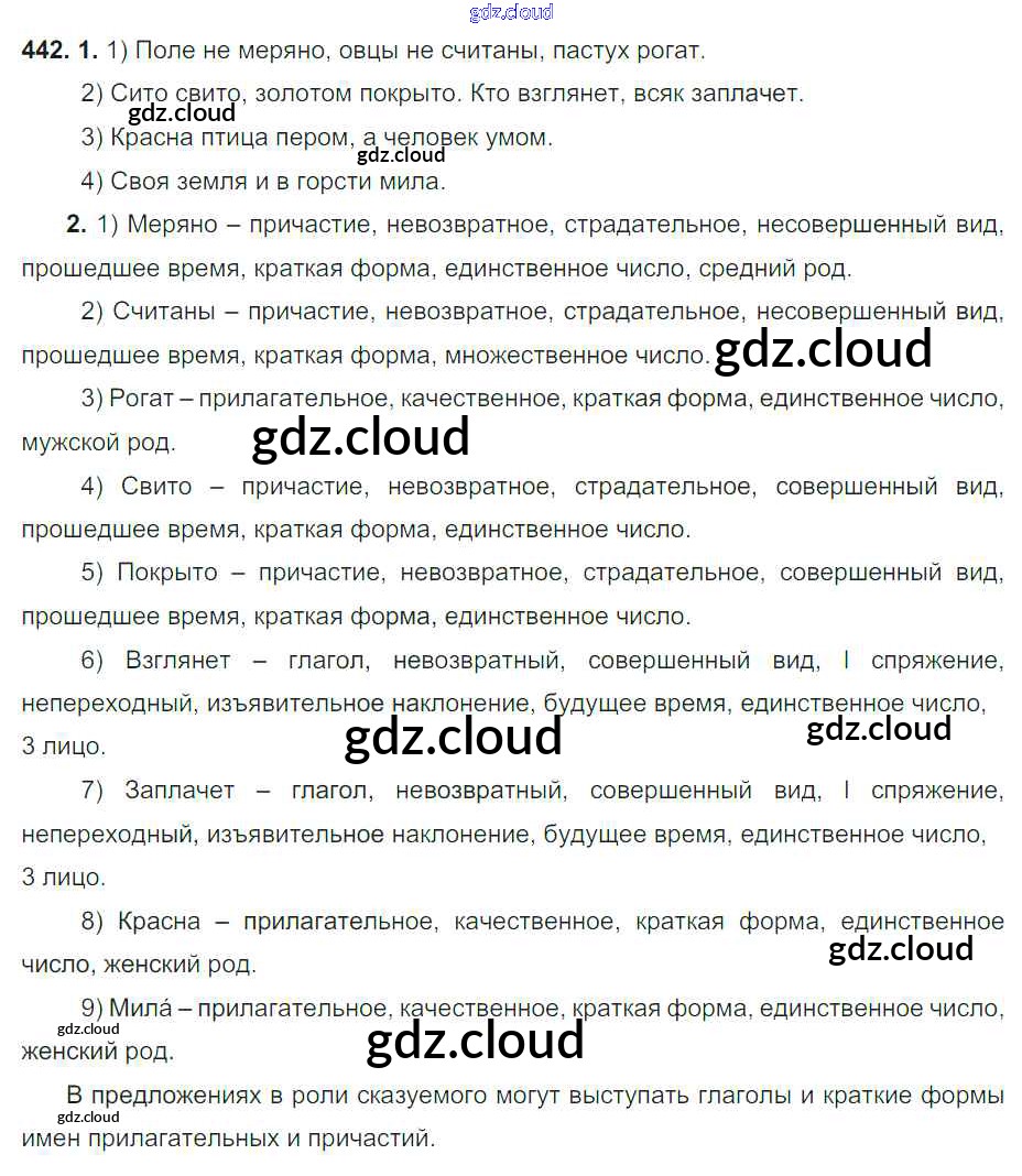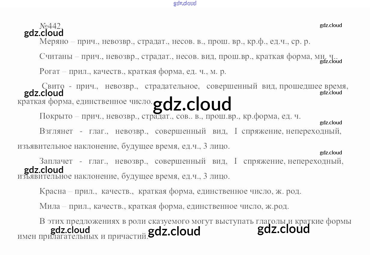 Ответ на задание 442 Учебник Русский язык за 6 (шестой) класс Разумовская, Львова, Капинос, Львов, Соловейчик, Сергеева, Тронина Вертикаль 2016, 2022