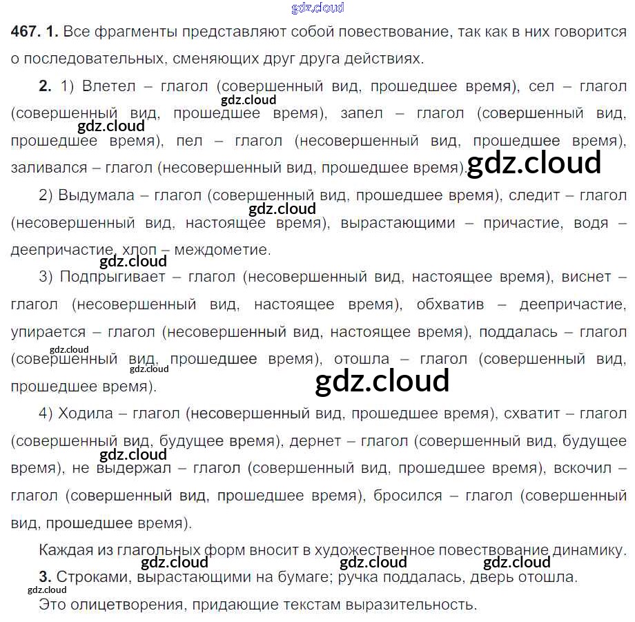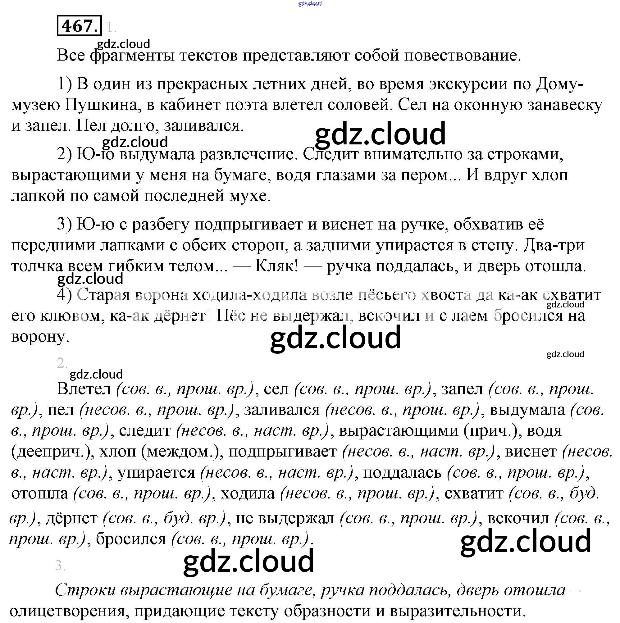 Ответ на задание 467 Учебник Русский язык за 6 (шестой) класс Разумовская, Львова, Капинос, Львов, Соловейчик, Сергеева, Тронина Вертикаль 2016, 2022