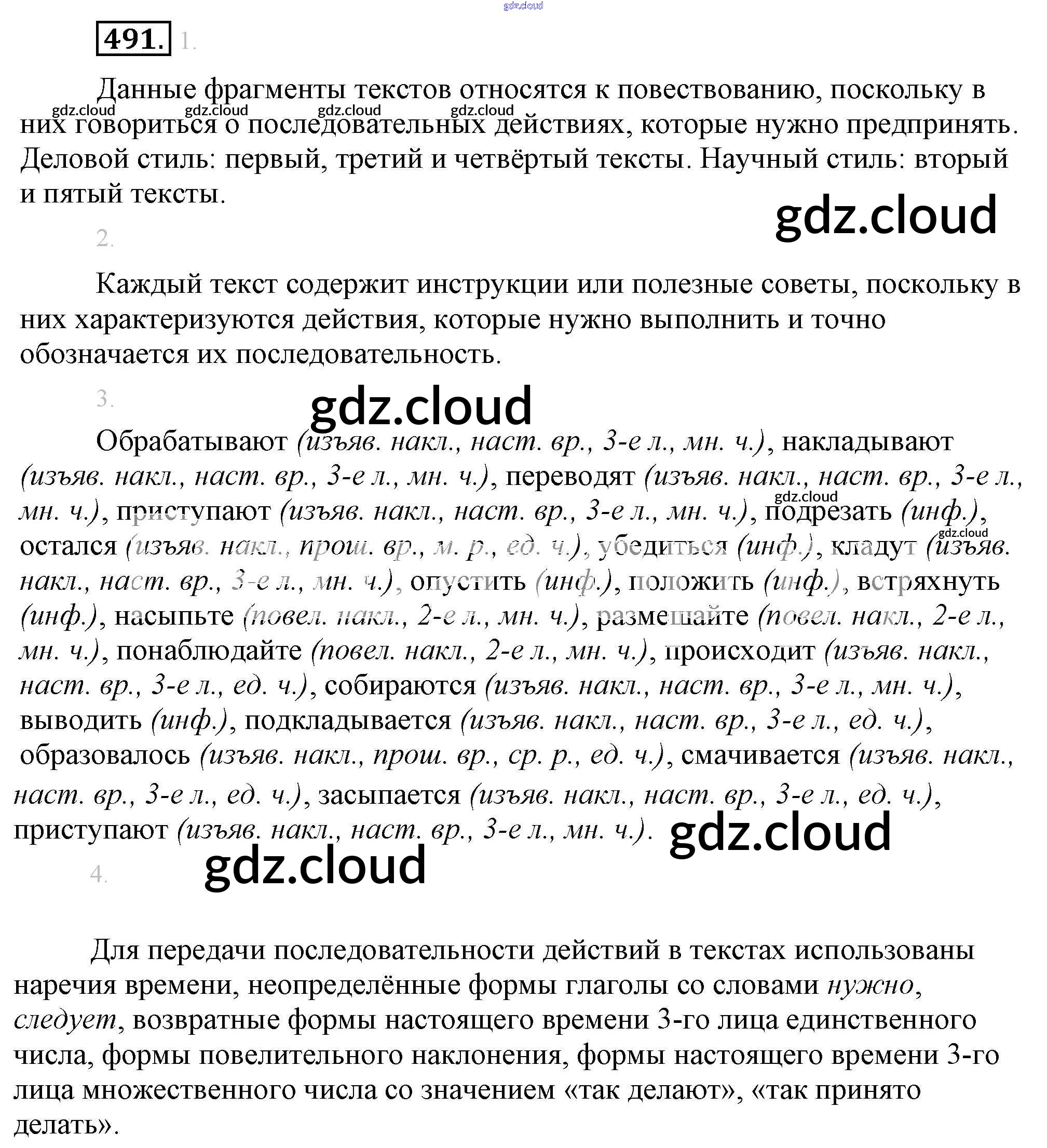 Ответ на задание 491 Учебник Русский язык за 6 (шестой) класс Разумовская, Львова, Капинос, Львов, Соловейчик, Сергеева, Тронина Вертикаль 2016, 2022