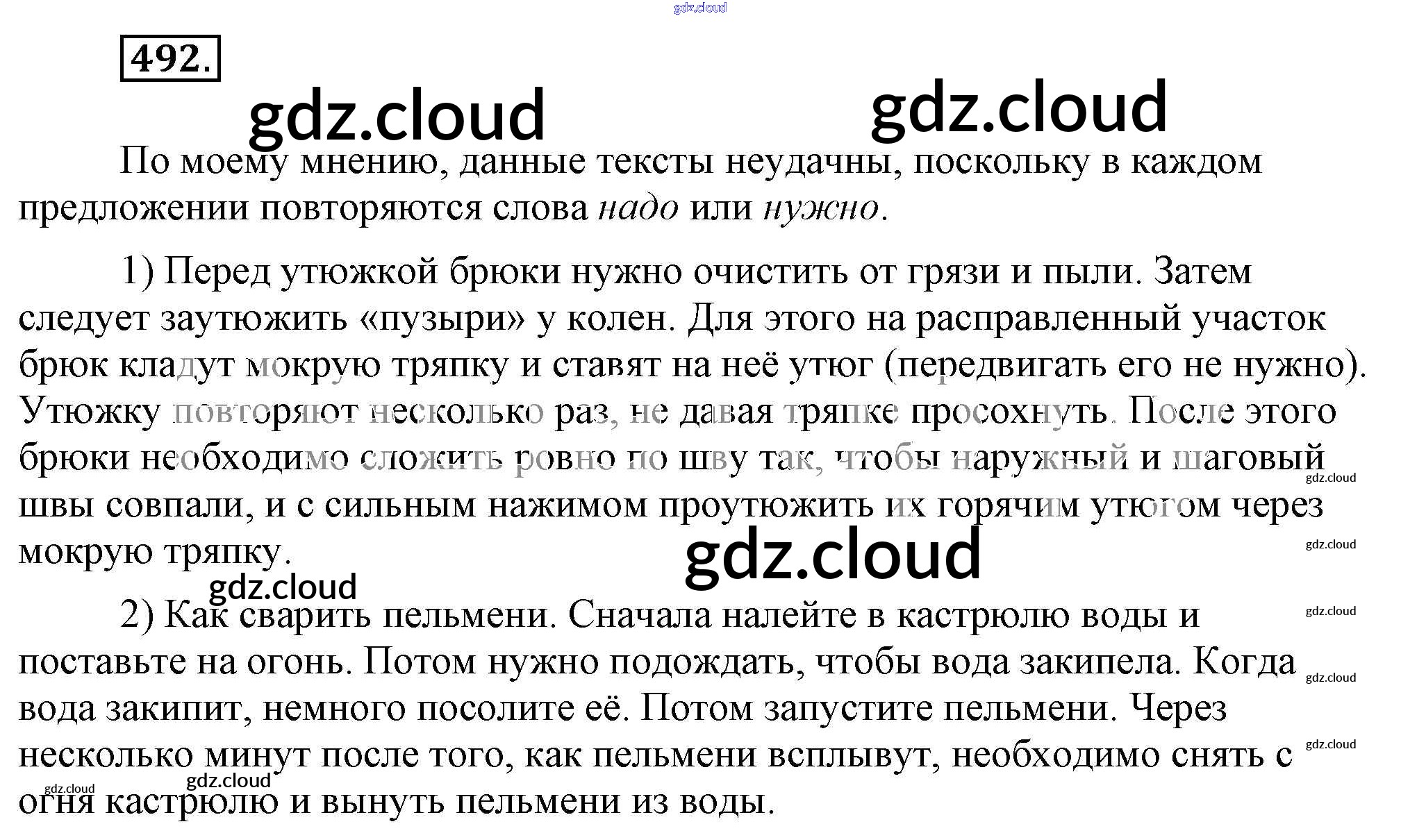 Ответ на задание 492 Учебник Русский язык за 6 (шестой) класс Разумовская, Львова, Капинос, Львов, Соловейчик, Сергеева, Тронина Вертикаль 2016, 2022