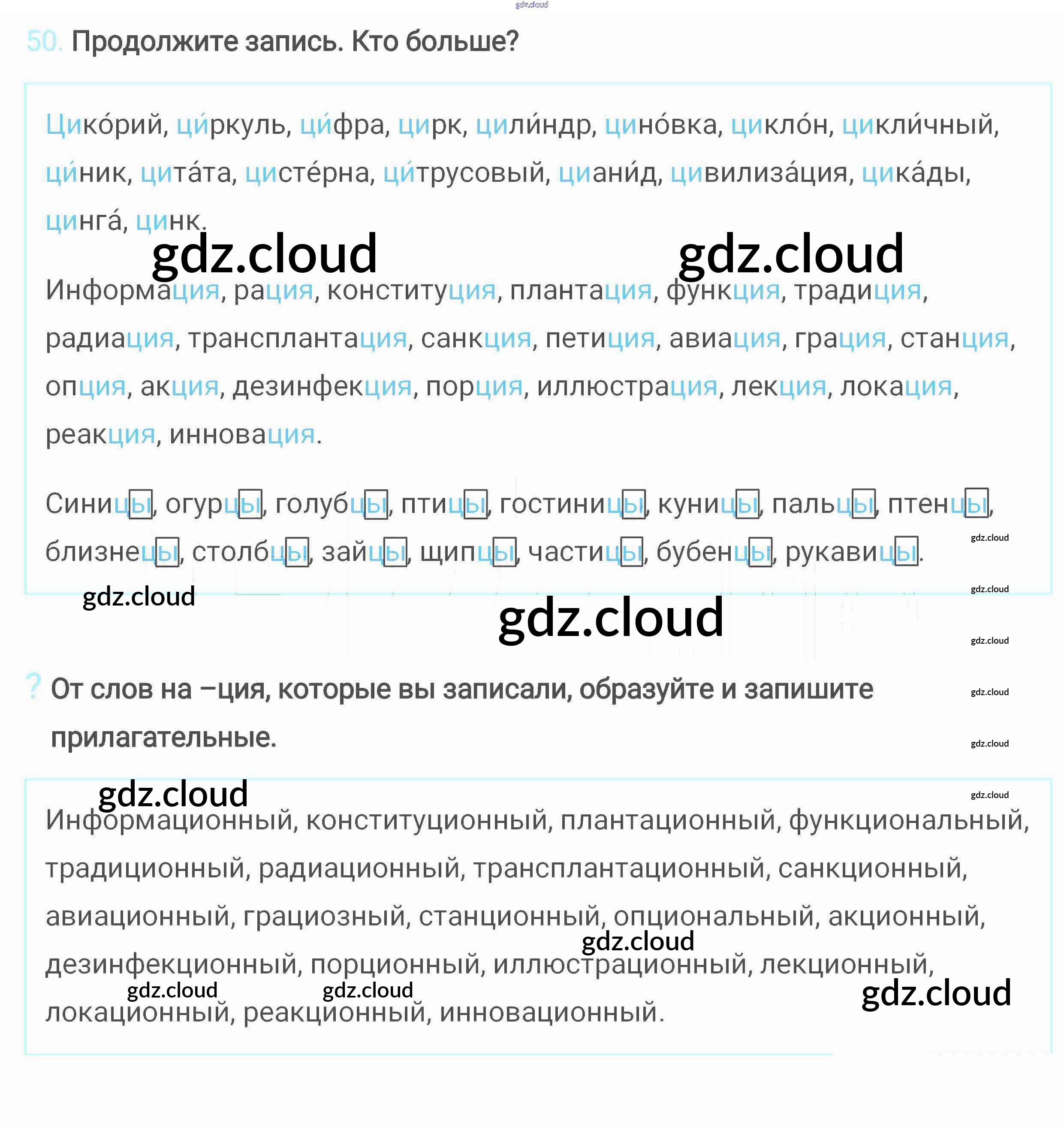 Ответ на задание 50 Учебник Русский язык за 6 (шестой) класс Разумовская, Львова, Капинос, Львов, Соловейчик, Сергеева, Тронина Вертикаль 2016, 2022