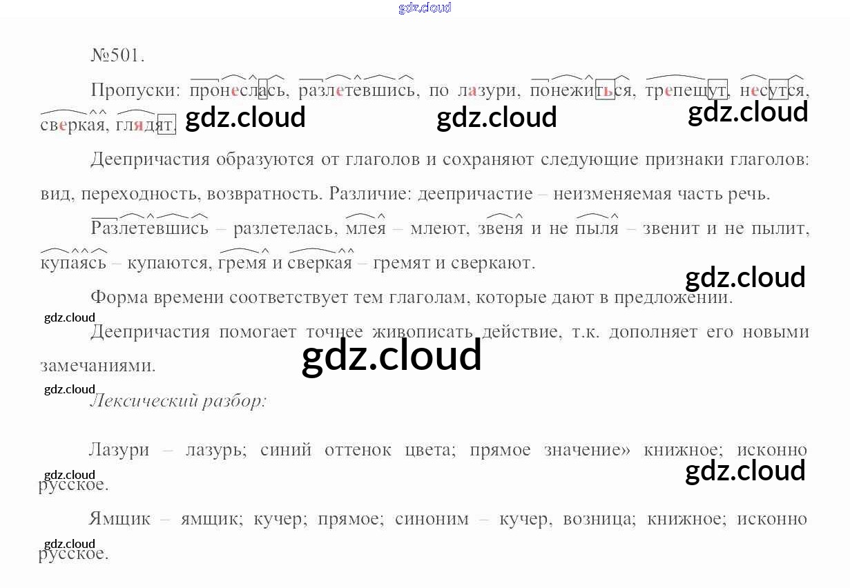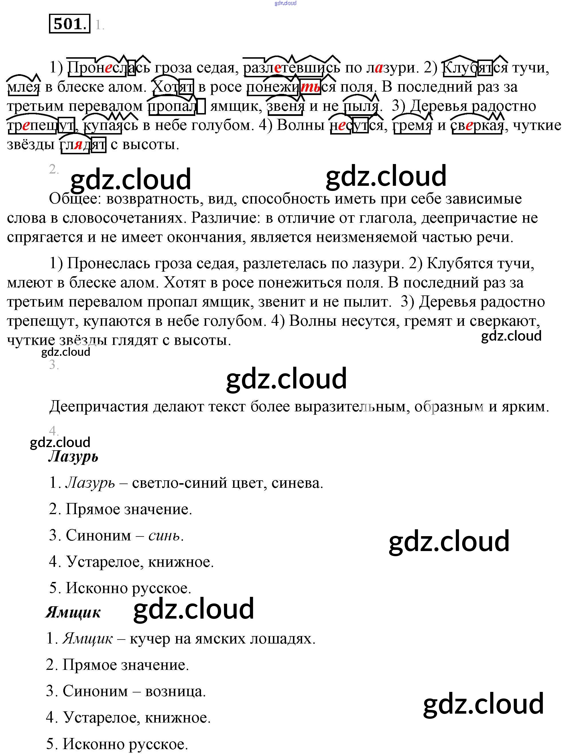 Ответ на задание 501 Учебник Русский язык за 6 (шестой) класс Разумовская, Львова, Капинос, Львов, Соловейчик, Сергеева, Тронина Вертикаль 2016, 2022