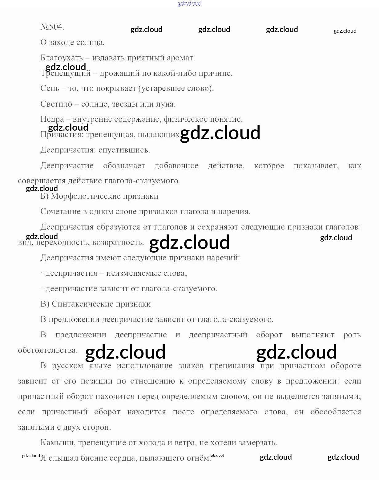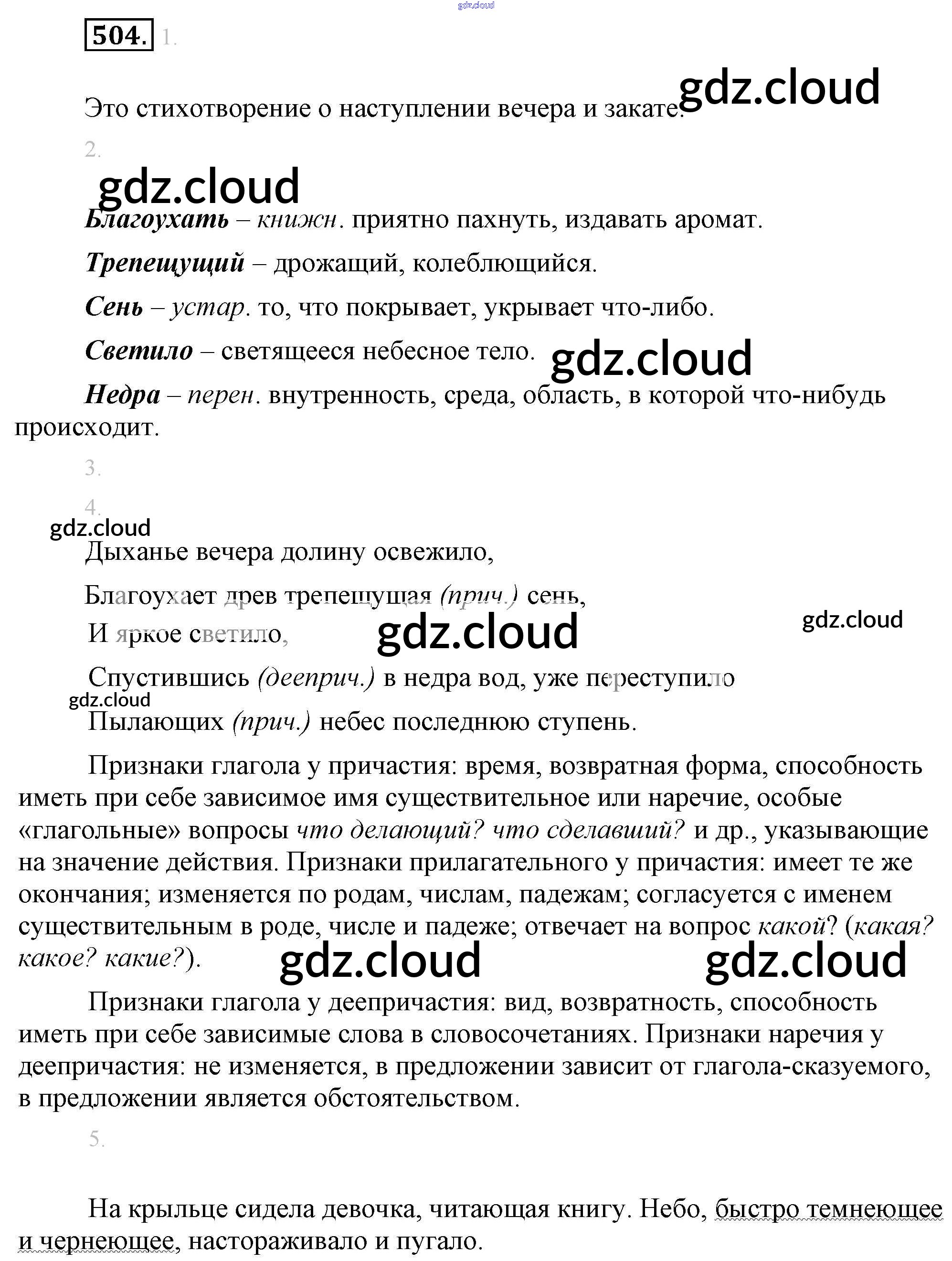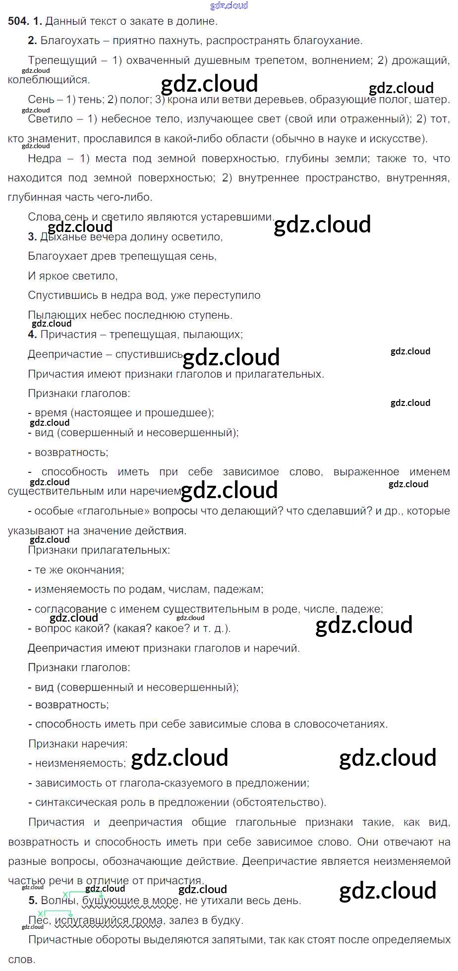 Ответ на задание 504 Учебник Русский язык за 6 (шестой) класс Разумовская, Львова, Капинос, Львов, Соловейчик, Сергеева, Тронина Вертикаль 2016, 2022