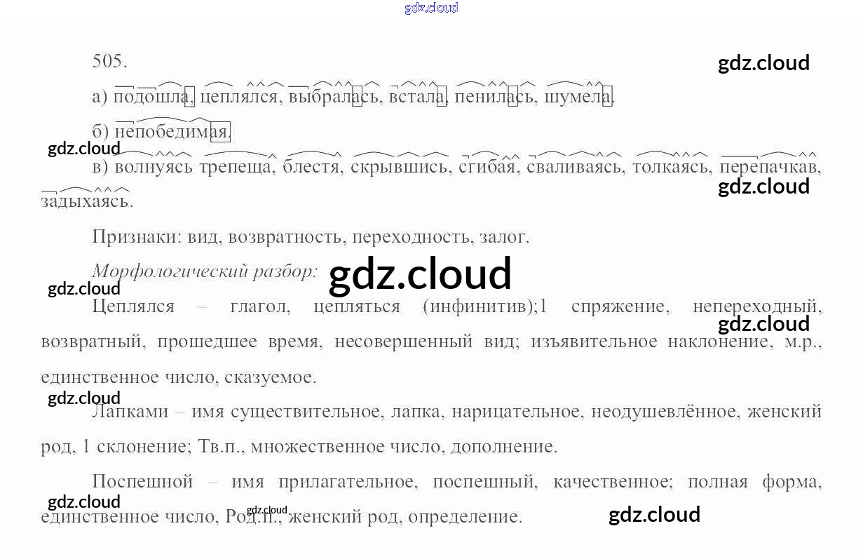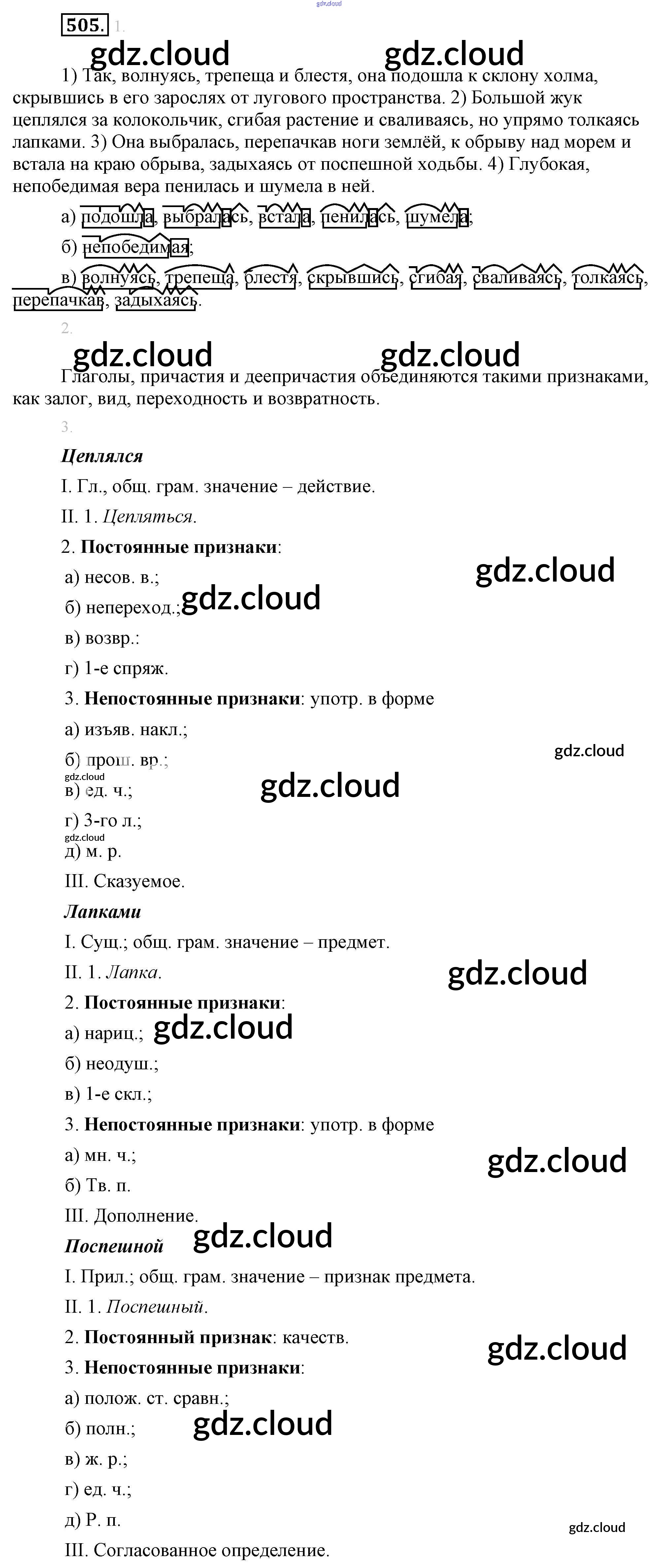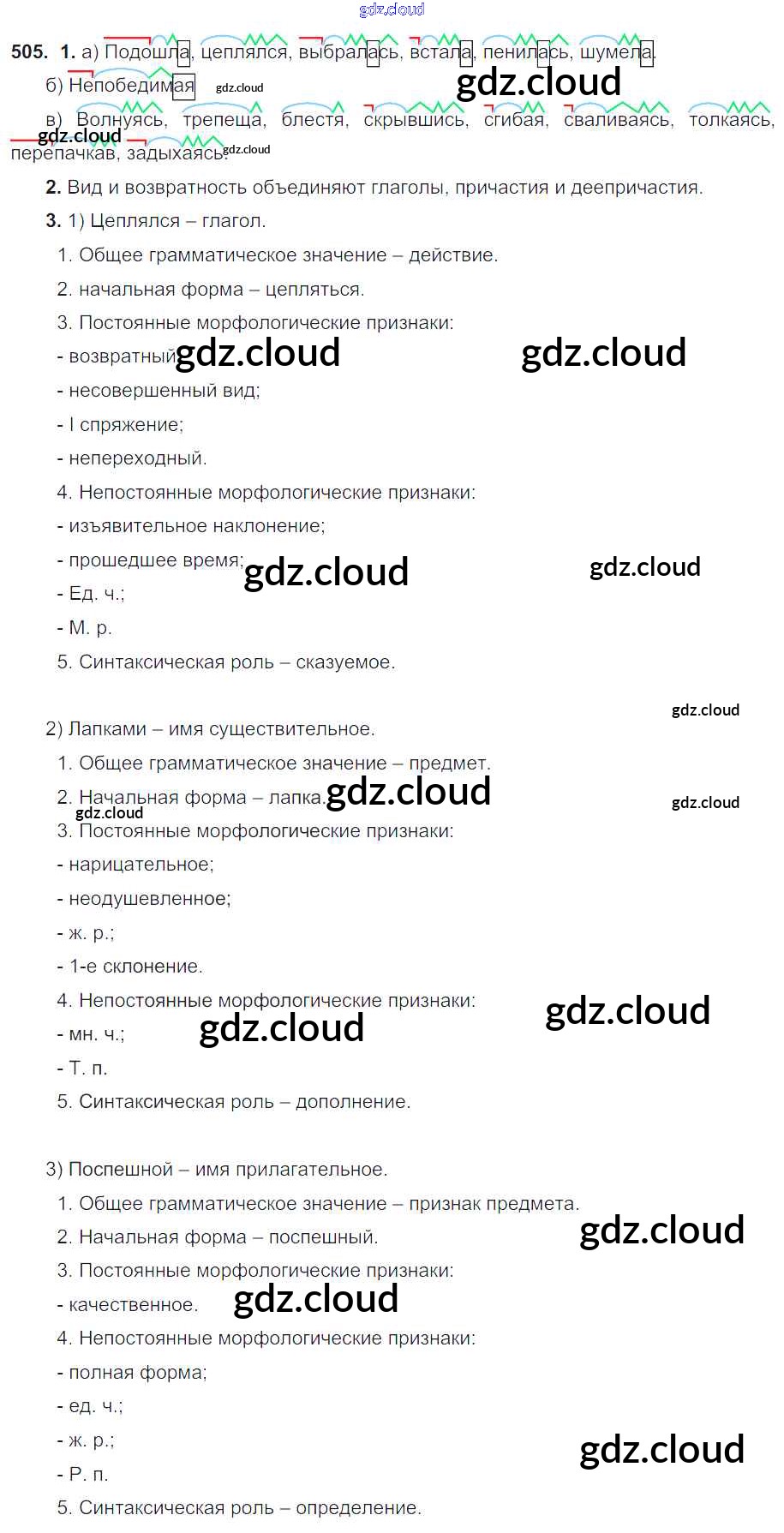 Ответ на задание 505 Учебник Русский язык за 6 (шестой) класс Разумовская, Львова, Капинос, Львов, Соловейчик, Сергеева, Тронина Вертикаль 2016, 2022