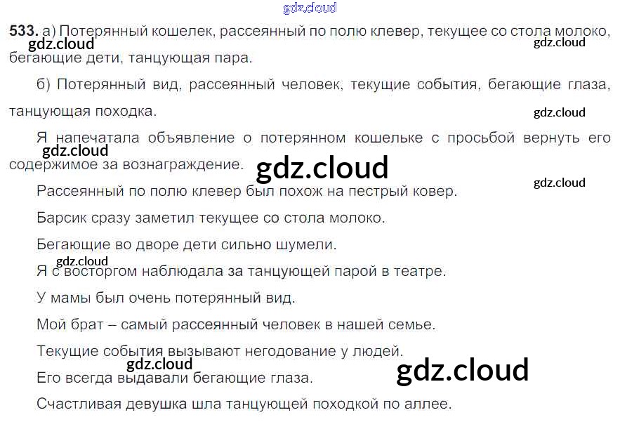 Ответ на задание 533 Учебник Русский язык за 6 (шестой) класс Разумовская, Львова, Капинос, Львов, Соловейчик, Сергеева, Тронина Вертикаль 2016, 2022