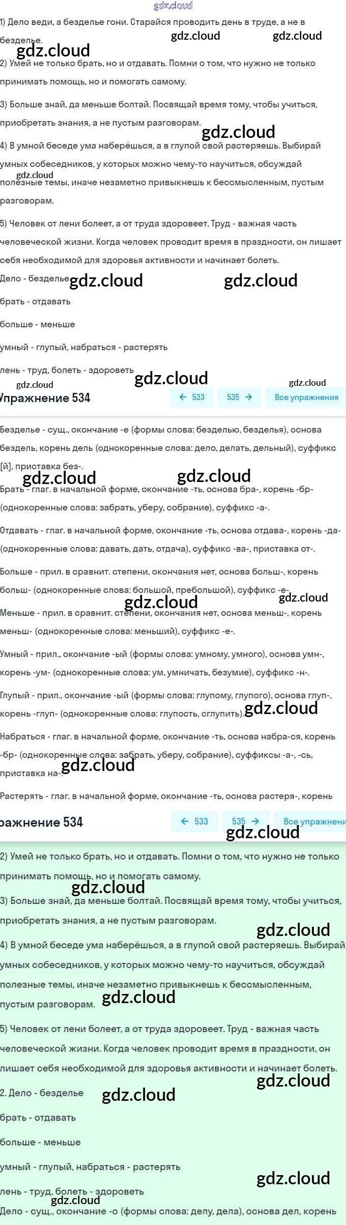Ответ на задание 534 Учебник Русский язык за 6 (шестой) класс Разумовская, Львова, Капинос, Львов, Соловейчик, Сергеева, Тронина Вертикаль 2016, 2022