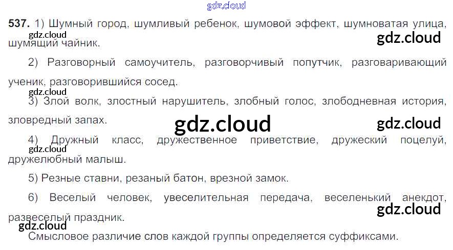 Ответ на задание 537 Учебник Русский язык за 6 (шестой) класс Разумовская, Львова, Капинос, Львов, Соловейчик, Сергеева, Тронина Вертикаль 2016, 2022